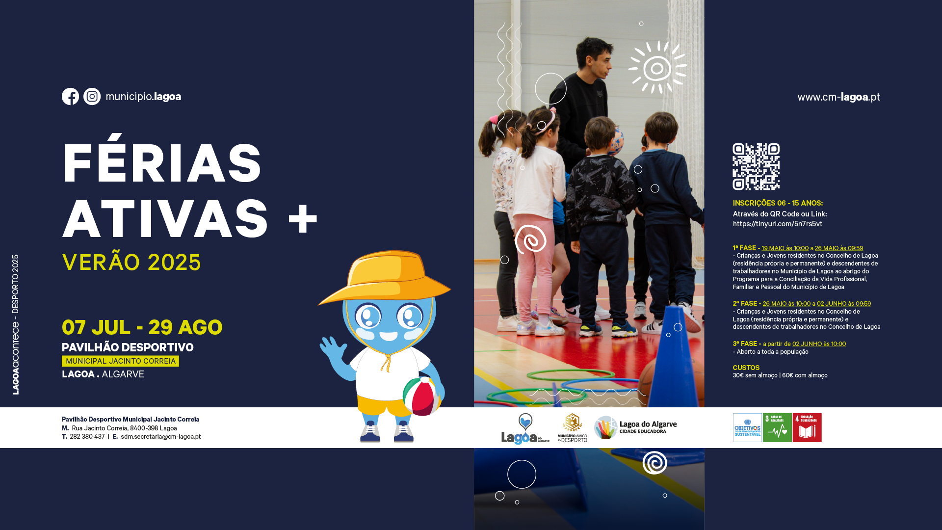 🎨🏓 Desporto, cultura, e muita diversão! Nas Férias Ativas+, as crianças e jovens nascidos entre 2010 e 2019 terão a oportunidade de participar em várias atividades. Inscreva os seus filhos e as suas filhas para um verão cheio de aprendizagem, alegria e atividade física, em Lagoa. Não perca esta oportunidade! 🌈👧👦