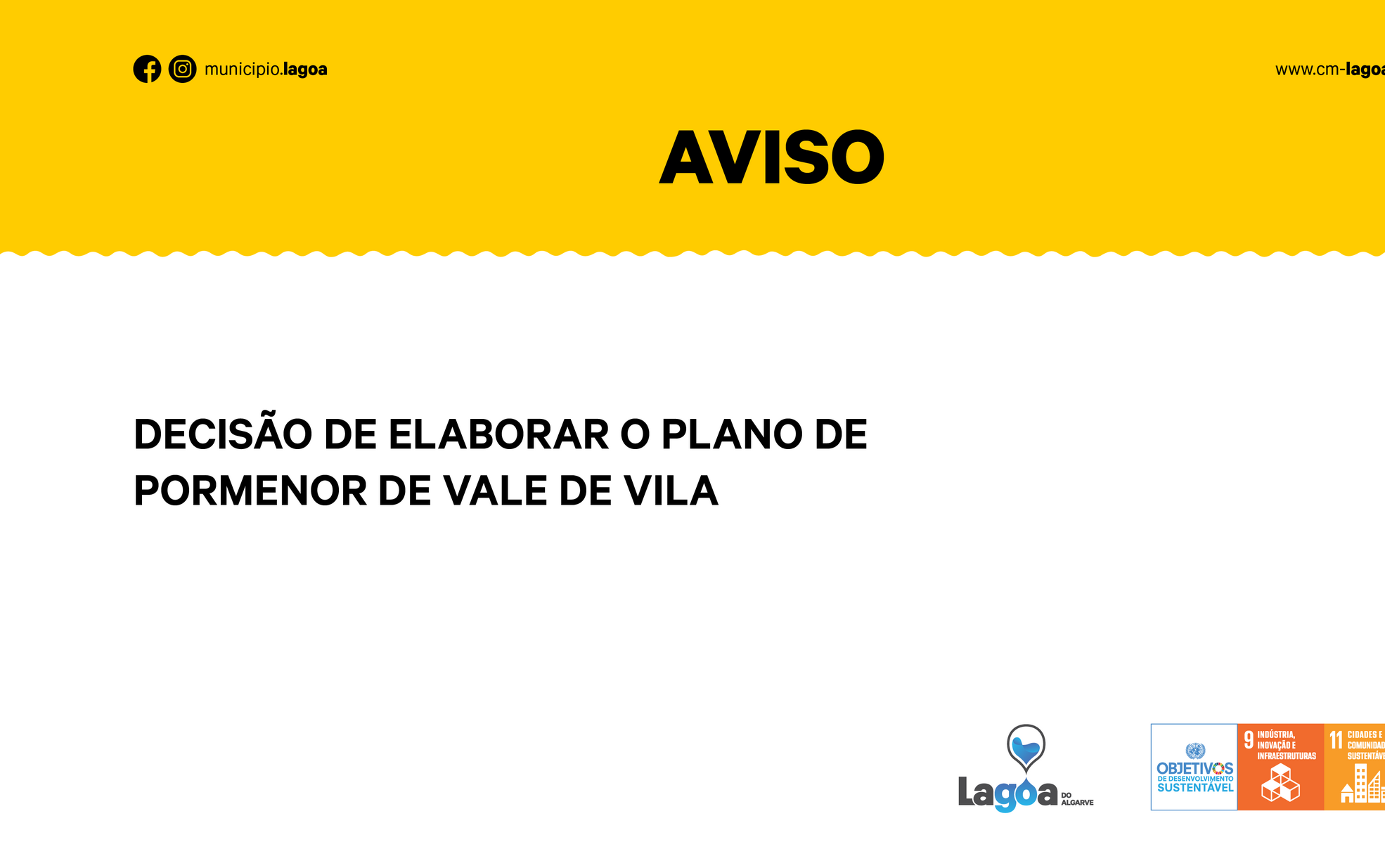 Luís António Alves da Encarnação, Presidente da Câmara Municipal de Lagoa, torna público, nos termos do n.º 1, 2 e 3 do artigo 76.º e alínea c), n.º 4 do artigo 191.º, do Regime Jurídico dos Instrumentos de Gestão Territorial, DL n.º 80/2015, de 14 de maio, e do artigo 56.º do anexo I da Lei n.º 75/2013, de 12 de setembro, na redação atual, que a Câmara Municipal de Lagoa, em reunião da Câmara Municipal de 26 de novembro de 2024, deliberou a aprovação dos termos de referência do Plano de Pormenor de Vale da Vila, estabelecendo um prazo de 12 meses para a sua elaboração.