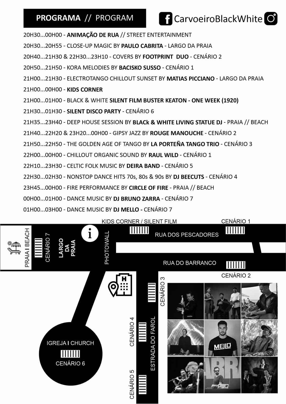 O preto e o branco são o dress code obrigatório, refletindo-se também nas múltiplas expressões artísticas que animarão a noite – da música à dança, passando pela magia, o cinema e a animação de rua.