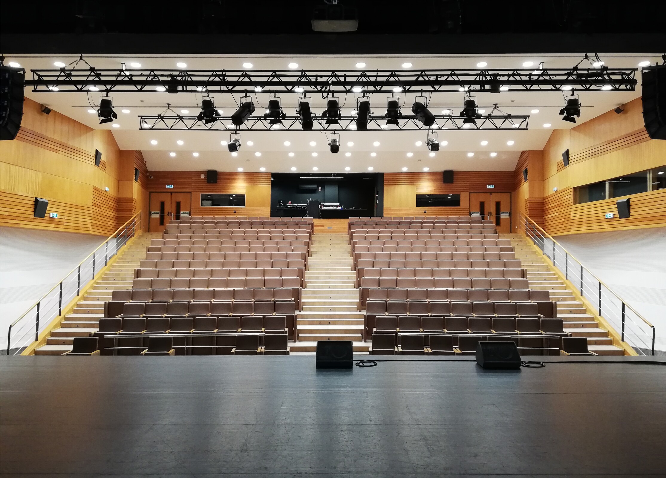 Localizado numa zona central da cidade, dispõe uma de plateia com 298 lugares (incluindo 3 lugares adaptados a pessoas com mobilidade reduzida), de camarins coletivos e individuais, de cabines de tradução, uma sala polivalente, diversas áreas funcionais (sistemas versáteis de áudio, luz e vídeo) e um bar. No exterior, existe um parque de estacionamento, assim como a praça pública envolvente compreendendo mais de 3500m² de área, frequentemente também aproveitada para a realização de eventos culturais ao ar livre.