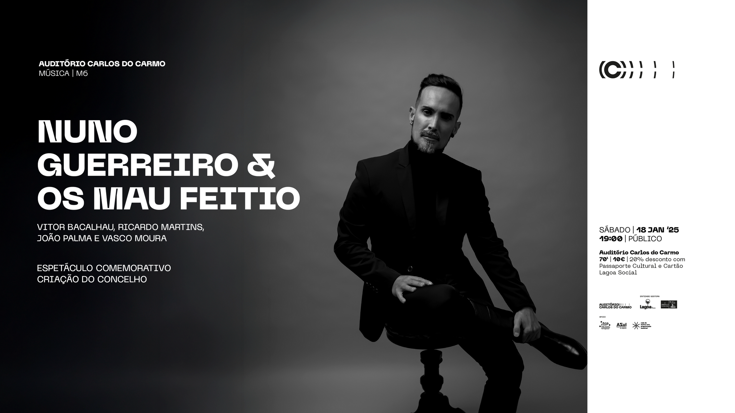 No próximo dia 18 de janeiro o Município de Lagoa assinala o 🎉252.º Aniversário da Criação do Concelho🎂 com o Espetáculo Comemorativo Nuno Guerreiro & Os Mau Feitio, pelas 19h00, no Auditório Carlos do Carmo, em Lagoa.