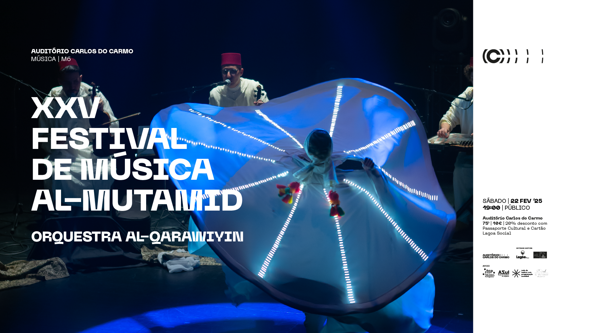 O Auditório Carlos do Carmo recebe, no dia 22 de fevereiro, pelas 19h00, o 🎼XXV Festival de Música Al-Mutamid🧕, que este ano traz a palco a 🎻Orquestra Al-Qarawiyin🥁 para mais uma edição deste festival que é já uma referência no início do ano, em Lagoa. Os bilhetes já se encontram à venda nos locais habituais.
