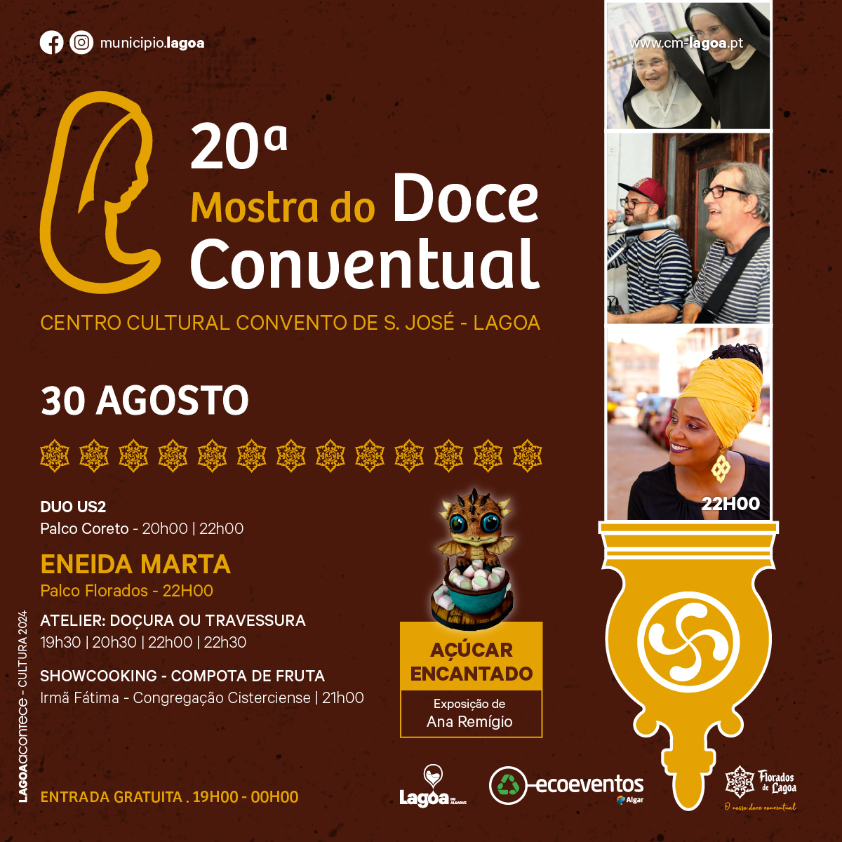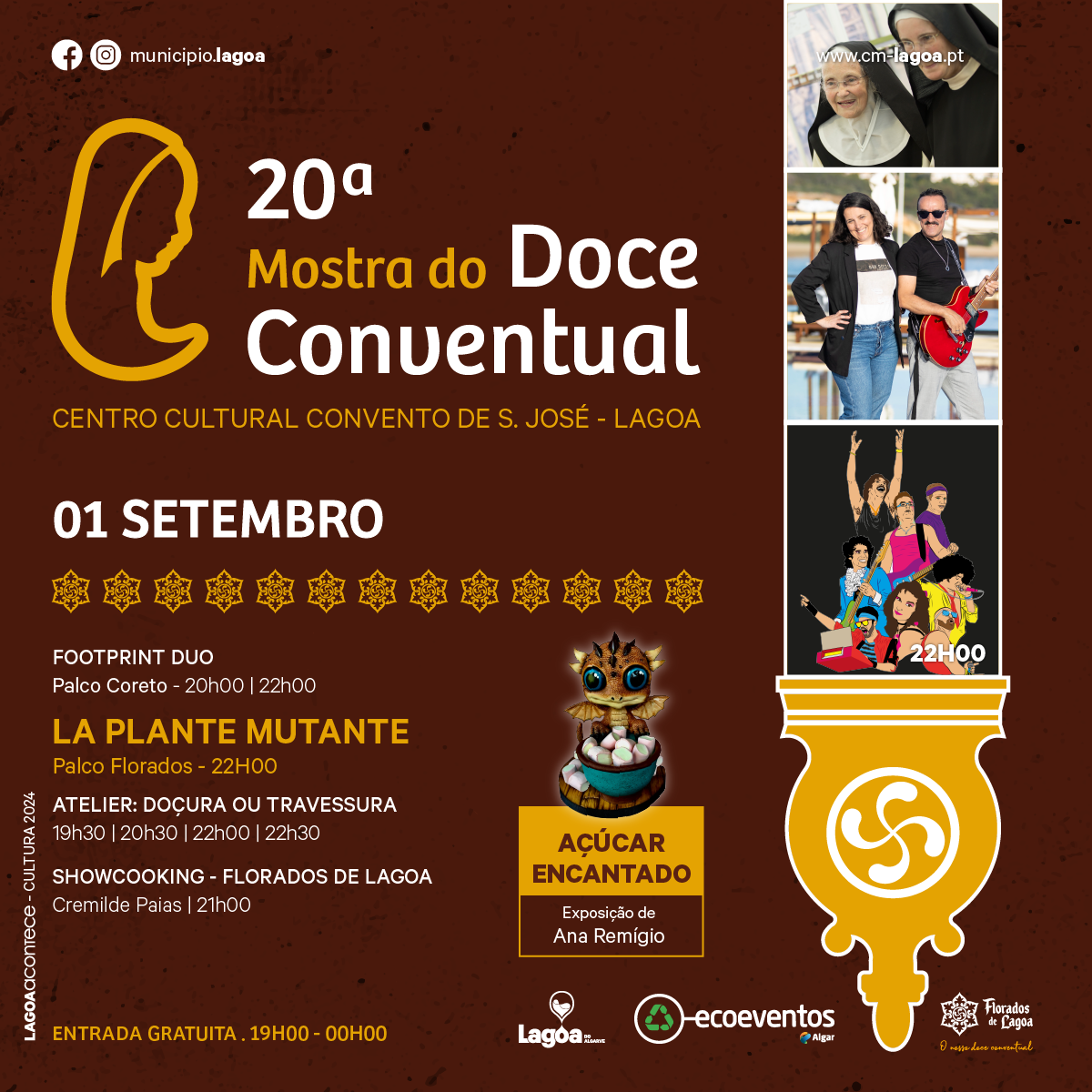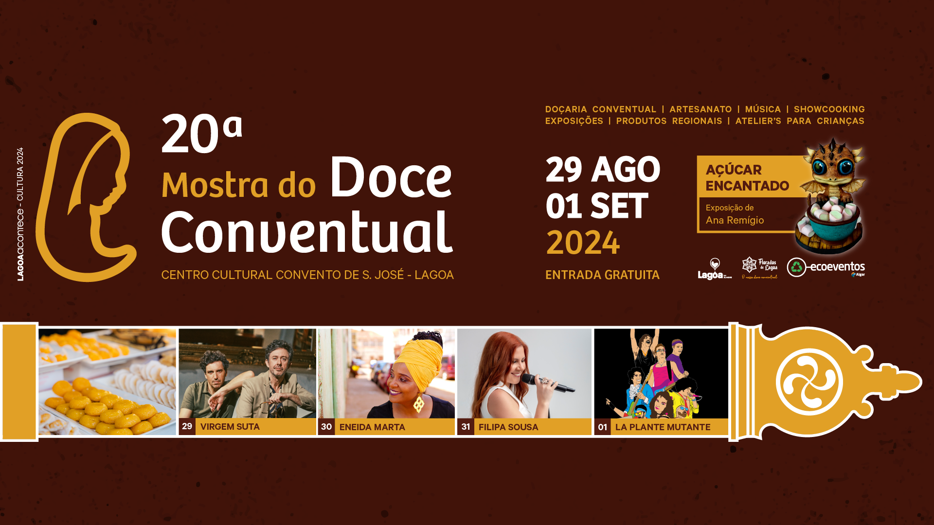 O Centro Cultural Convento de São José e áreas circundantes, em Lagoa, acolhem, anualmente, a 🎂Mostra do Doce Conventual🧁, este ano com a sua 20º edição. Entre os dias 29 de agosto e 01 de setembro, todos os caminhos vão dar a este doce evento, de entrada gratuita, entre as 19h00 e a 00h00.