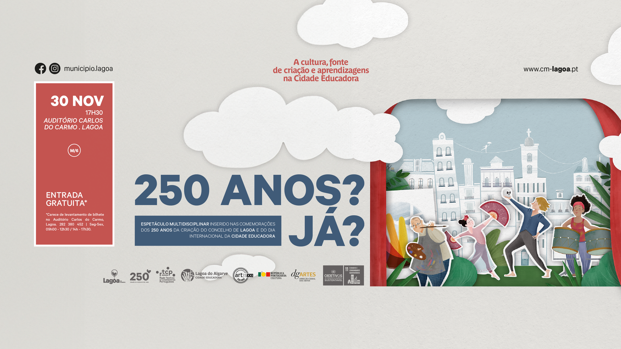 O Auditório Carlos do Carmo, em Lagoa, recebe no próximo dia 30 de novembro, pelas 17h30, o espetáculo multidisciplinar “250 Anos? Já?”, inserido nas comemorações dos 250 anos da criação do Concelho de Lagoa e a entrada é gratuita.