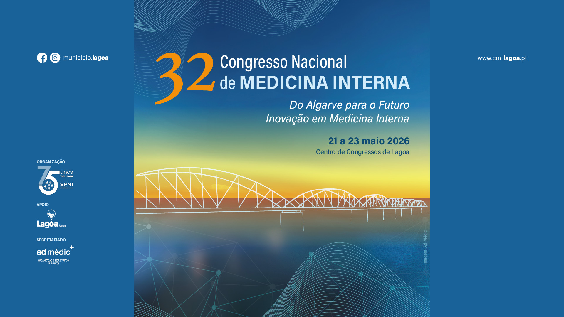 O Município de Lagoa associa-se à realização do 32.º Congresso Nacional de Medicina Interna, que decorrerá de 21 a 23 de maio de 2026, no Centro de Congressos de Lagoa, acolhendo profissionais de saúde de todo o país para um dos mais relevantes encontros científicos na área da Medicina Interna.