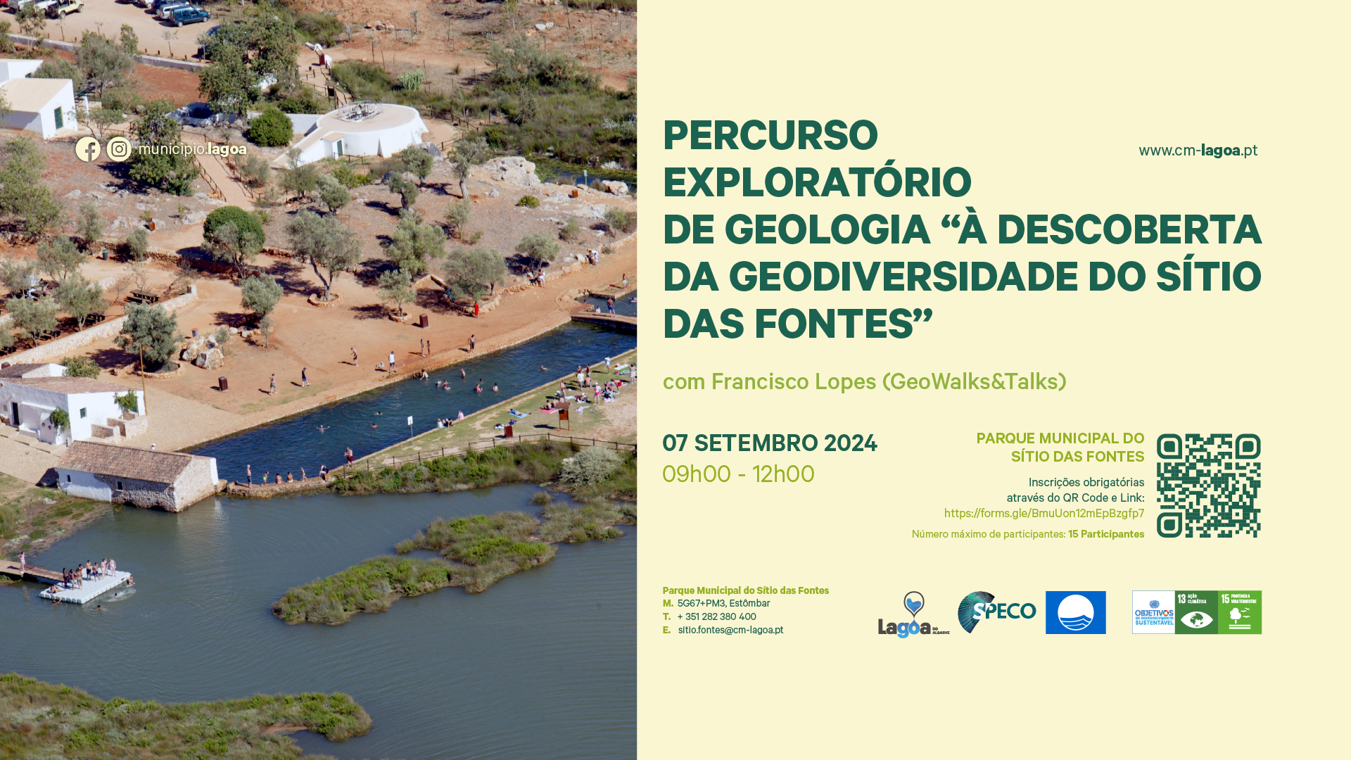 No dia 07 de setembro, entre as 09h00 e as 12h00 o Parque Municipal do Sítio das Fontes, em Estômbar, recebe a atividade Percurso Exploratório de Geologia 🗺️"À Descoberta da Geodiversidade do Sítio das Fontes"🌿, com Francisco Lopes da GeoWalks&Talks. A participação é gratuita.