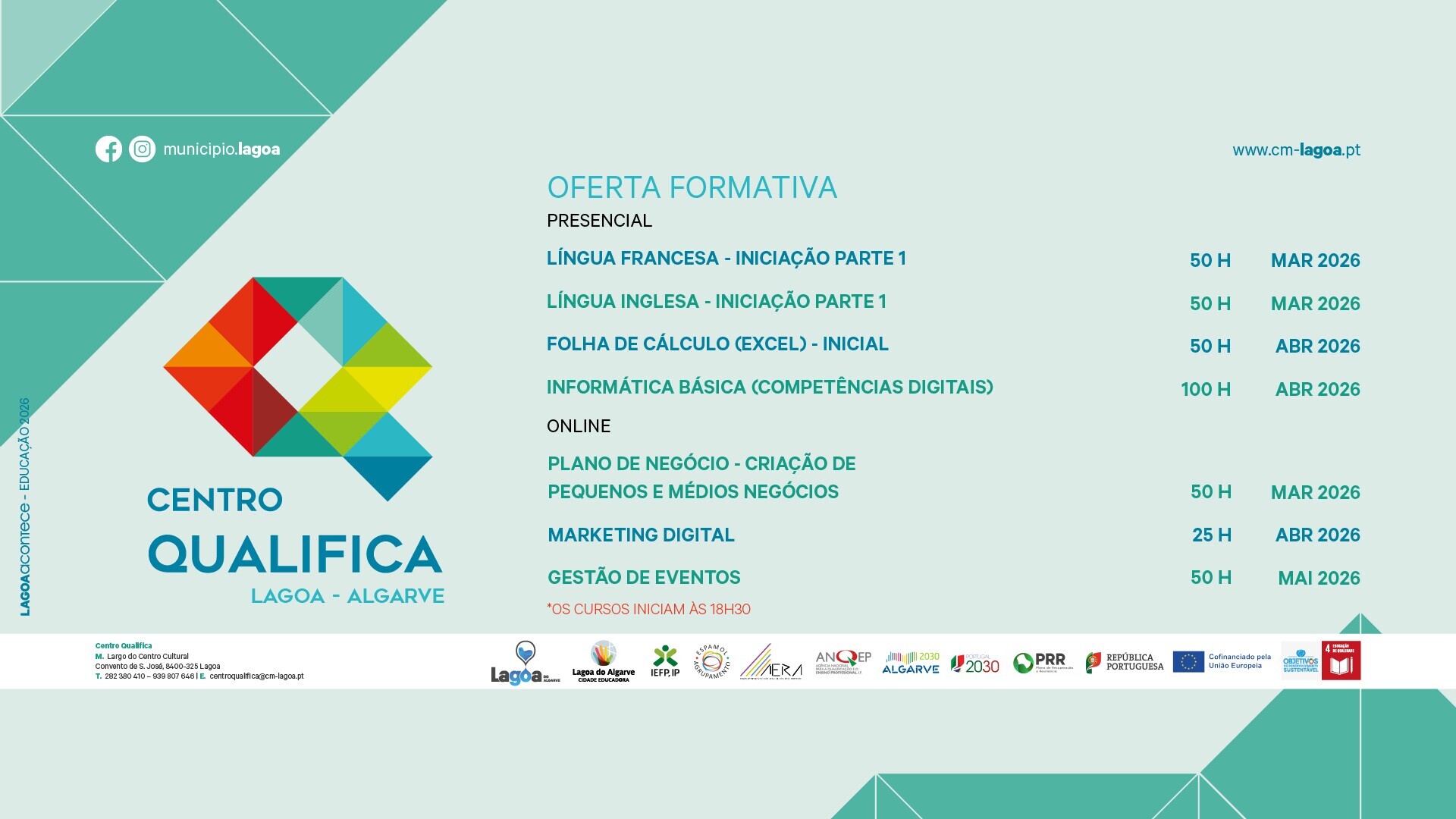 Mais informação através dos contatos: centroqualifica@cm-lagoa.pt | 282 380 410 | 939 807 646