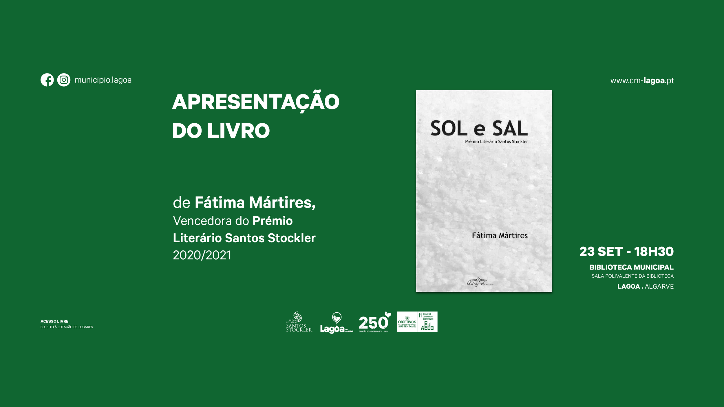 A Biblioteca Municipal de Lagoa recebe no dia 23 de setembro, pelas 18h30, a apresentação do livro “Sol e Sal” de Fátima Mártires, vencedora do Prémio Literário Santos Stockler de 2020/2021.