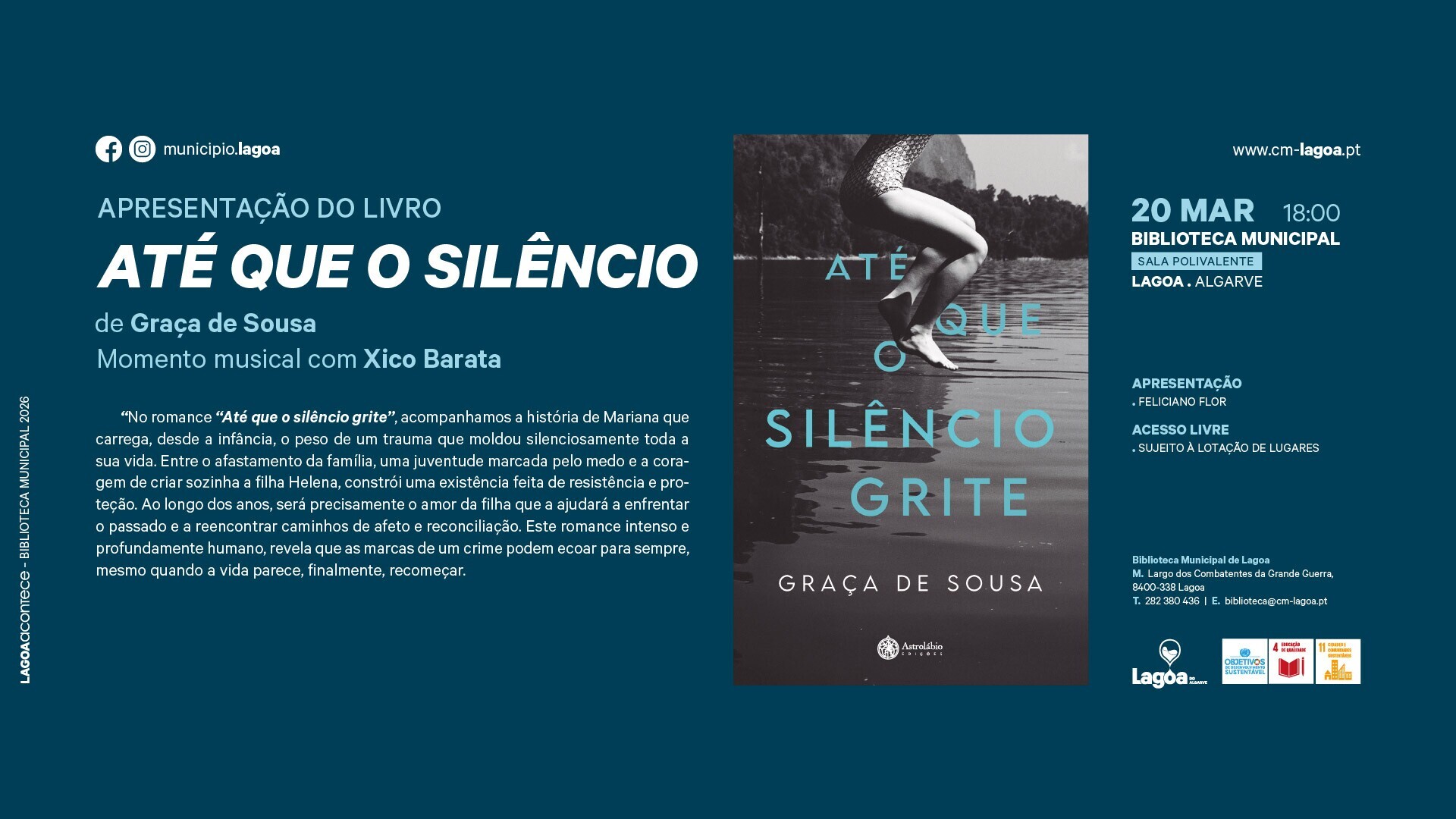 A Biblioteca Municipal recebe a apresentação do livro "Até que o silêncio grite", da autora Graça de Sousa, numa sessão apresentada por Feliciano Flor.