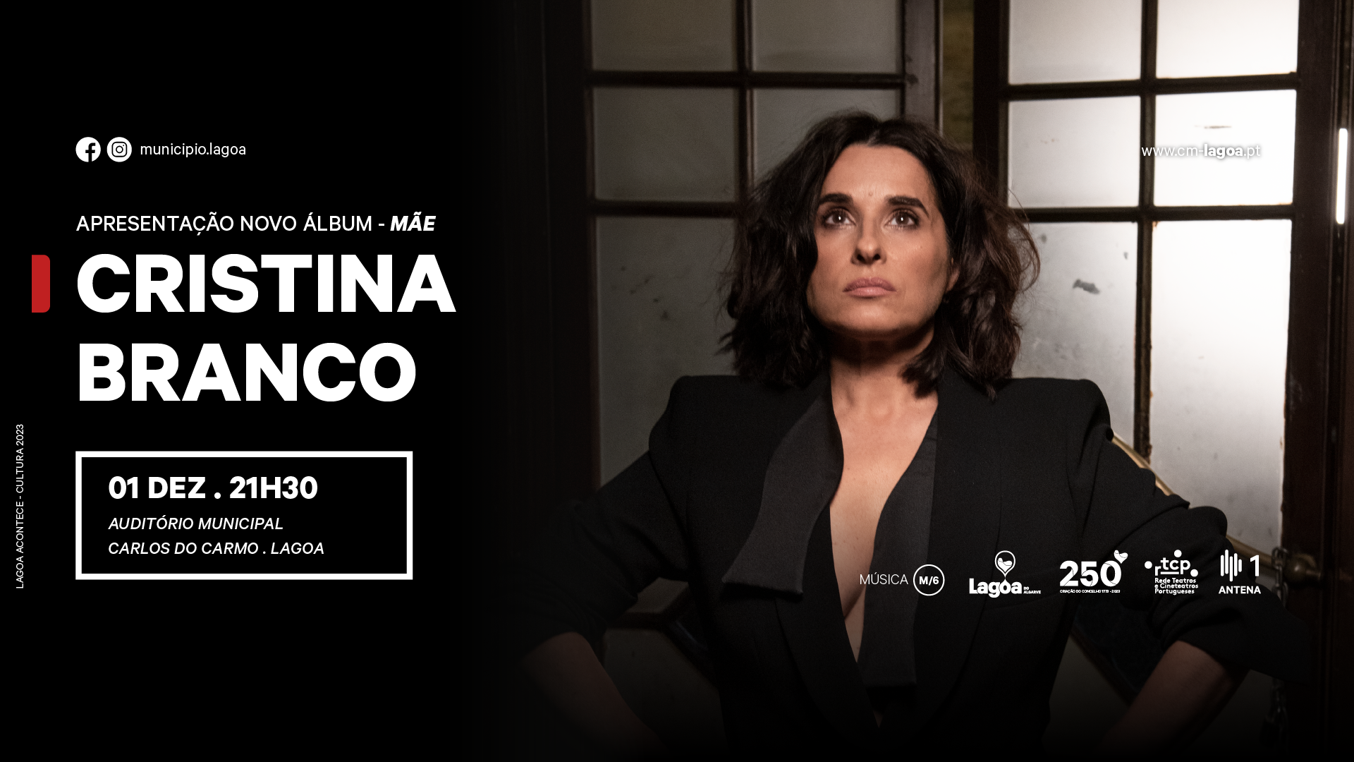 O Auditório Carlos do Carmo, em Lagoa, recebe o concerto de Apresentação do Novo Álbum – Mãe, de Cristina Branco, no dia 01 de dezembro, pelas 21h30 e os bilhetes já se encontram disponíveis