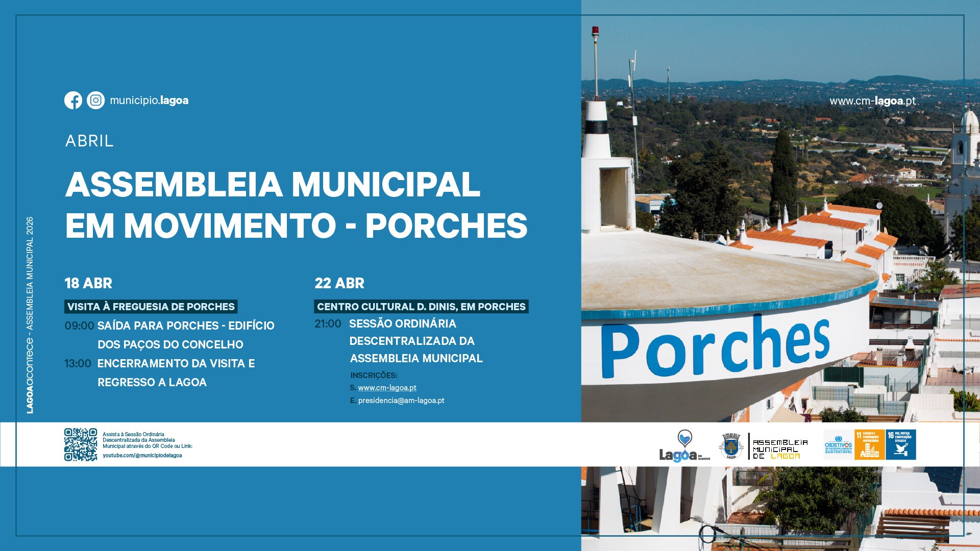 A primeira sessão descentralizada terá lugar em Porches, no próximo dia 22 de abril, no Centro Cultural D. Dinis, constituindo um momento privilegiado de diálogo e auscultação dos cidadãos, diretamente no território.