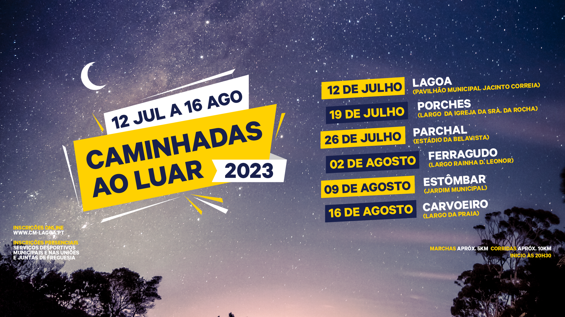 Em 2023 as Caminhadas ao Luar estão de regresso para mais seis sessões de caminhada, ou corrida, iluminadas pela Lua!