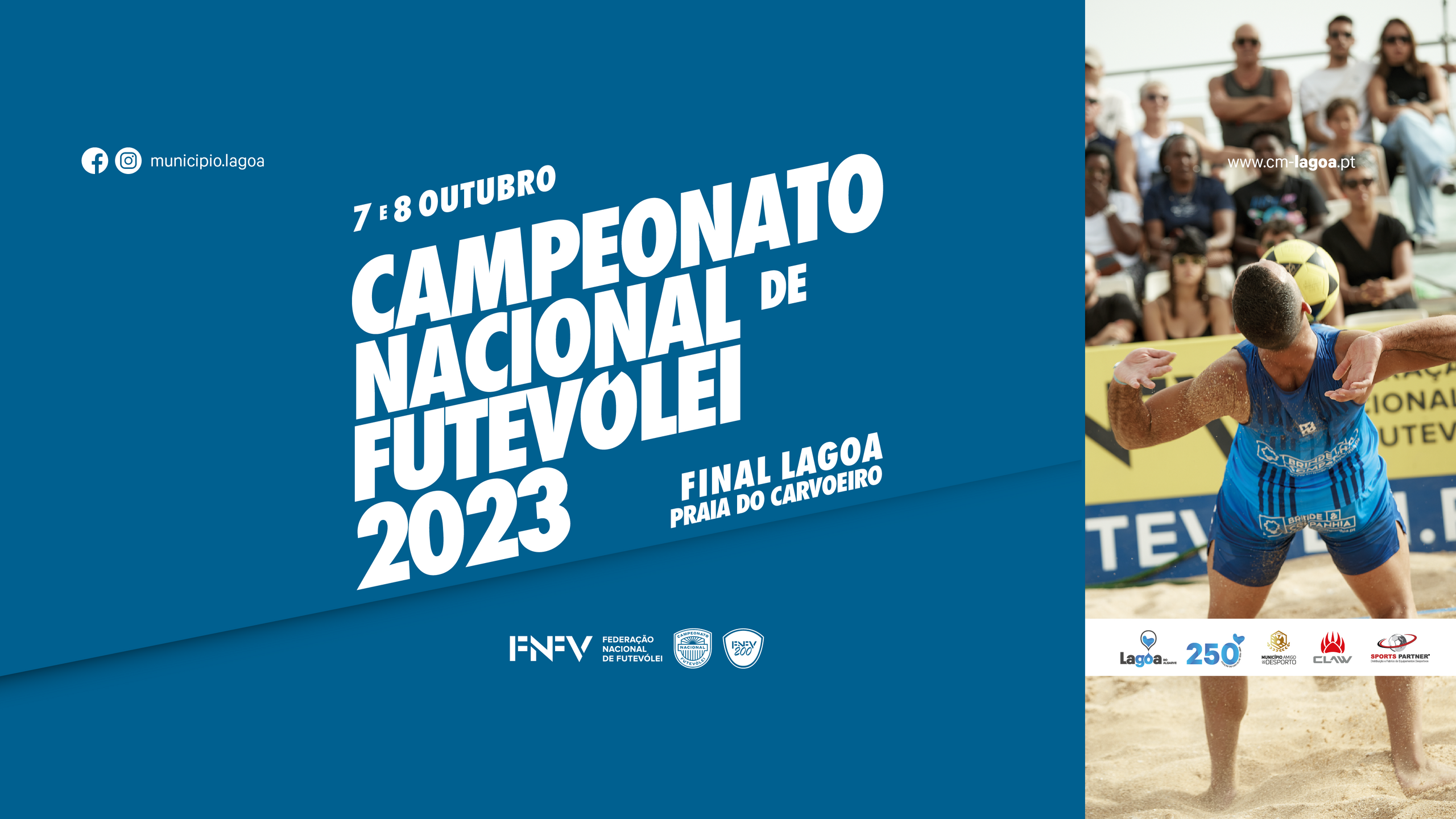 O Município de Lagoa e a Federação Nacional de Futevólei organizam a etapa final do Campeonato Nacional de Futevólei, no concelho de Lagoa, nos dias 07 e 08 de outubro, na Praia do Carvoeiro, com os jogos as atividades a terem início pelas 09h00.