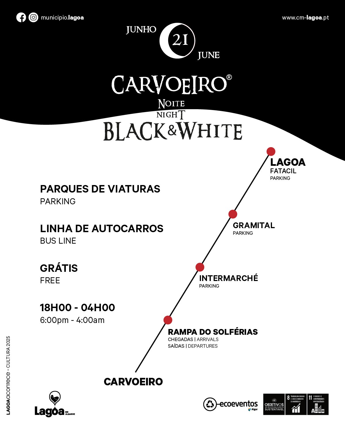 O Município de Lagoa promove, no próximo dia 21 de junho, a 11.ª edição do Carvoeiro Noite Black & White, um evento que já conquistou um lugar de destaque no calendário nacional e que este ano coincide simbolicamente com a celebração do solstício de verão – o dia mais longo do ano, associado à luz, ao fogo e à celebração da natureza.