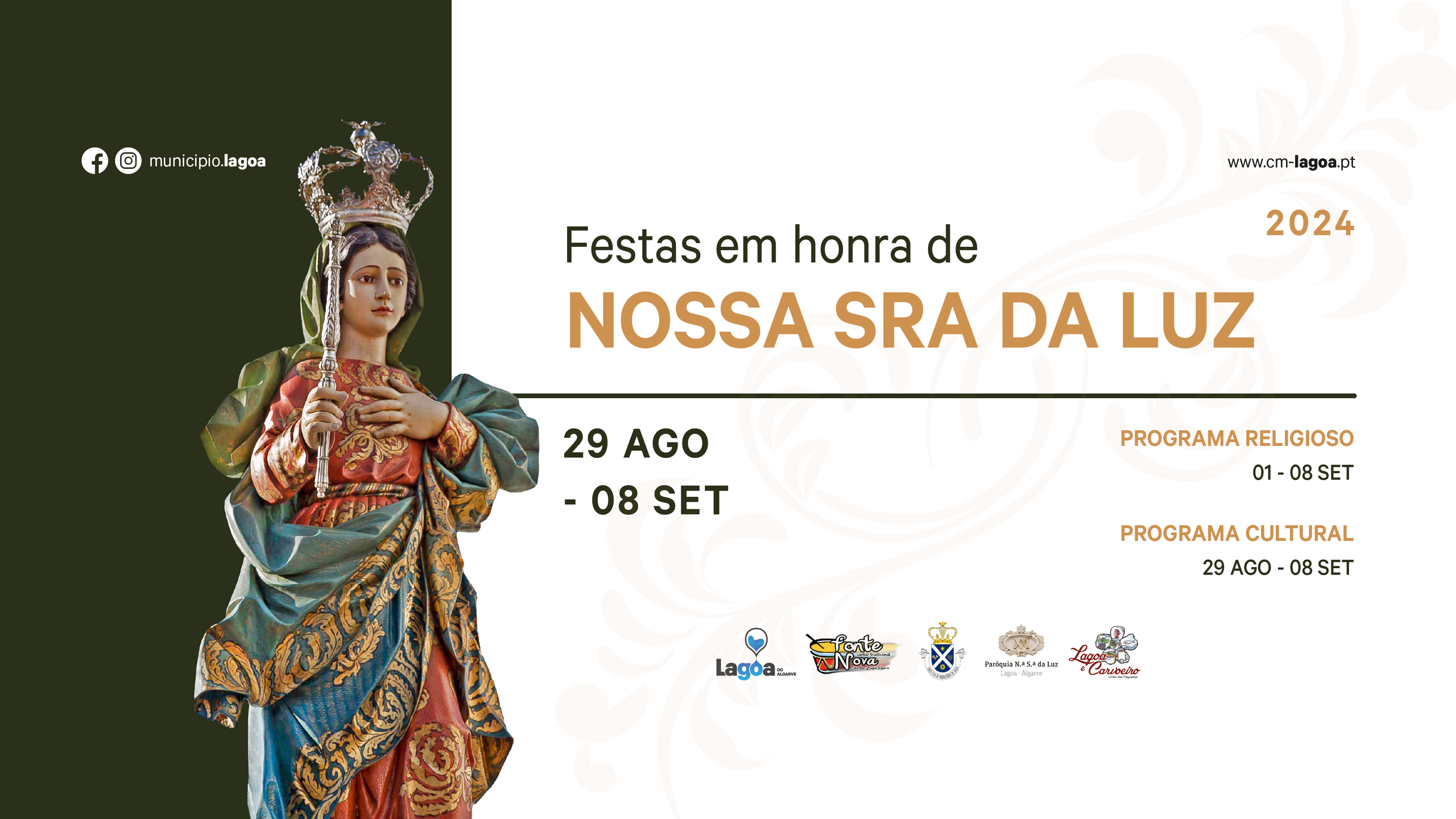 A Câmara Municipal de Lagoa em parceira com outras entidades do concelho, vai promover um programa com diversas atividades de caráter religioso e cultural, onde se inserem as festas da padroeira Nossa Senhora da Luz e o Feriado Municipal no dia 8 de setembro com grandiosos espetáculos que vão animar os Lagoenses e a todos os que visitam Lagoa nestes dias.