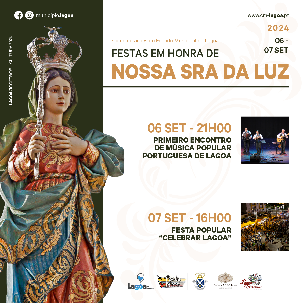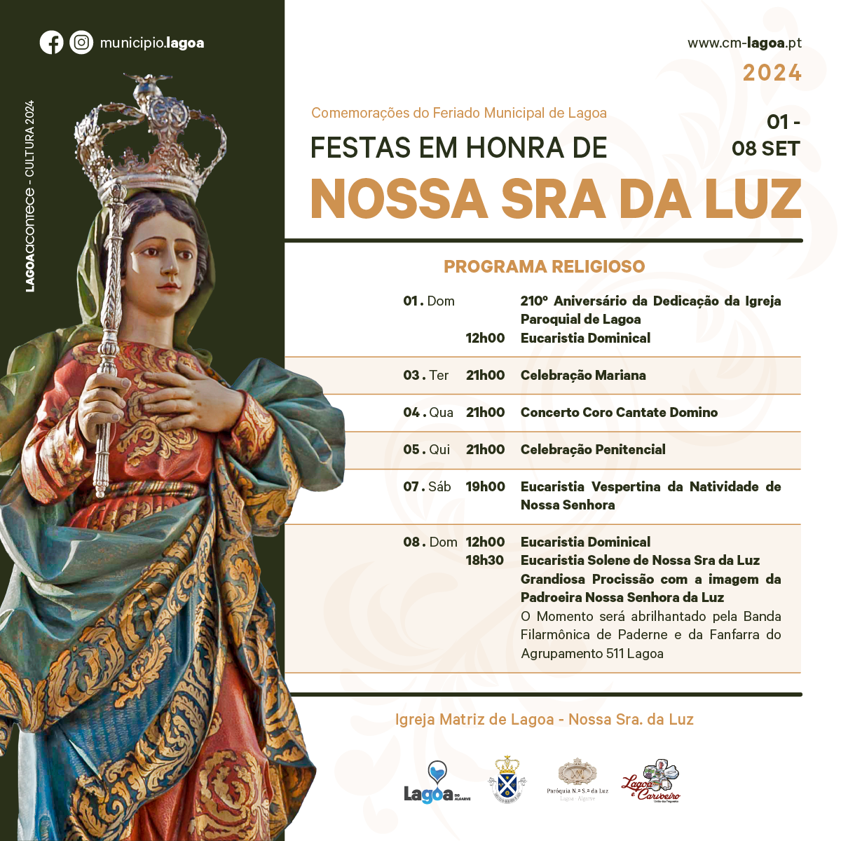 🙏 Festas em Honra da Nossa Senhora da Luz e Feriado Municipal de Lagoa, de 29 de agosto a 08 de setembro, participe nas festividades com momentos religiosos e culturais imperdíveis.😊🤩