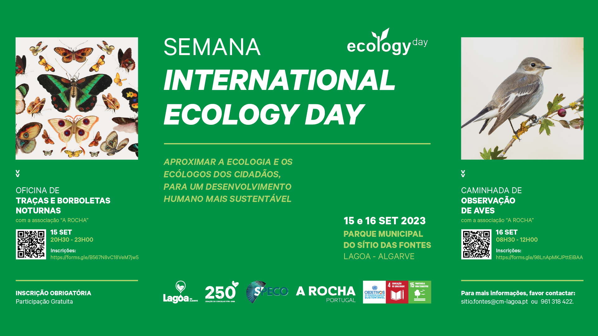 De 15 a 16 de setembro de 2023, o Município de Lagoa alia-se à SPECO (Sociedade Portuguesa de Ecologia), e à A Rocha (Associação Cristã de Defesa do Ambiente), de modo a promover o International Ecology Day, uma iniciativa internacional que pretende estabelecer, de forma única, a ligação entre ecologia e sociedade, rumo à construção de um desenvolvimento humano mais sustentável.