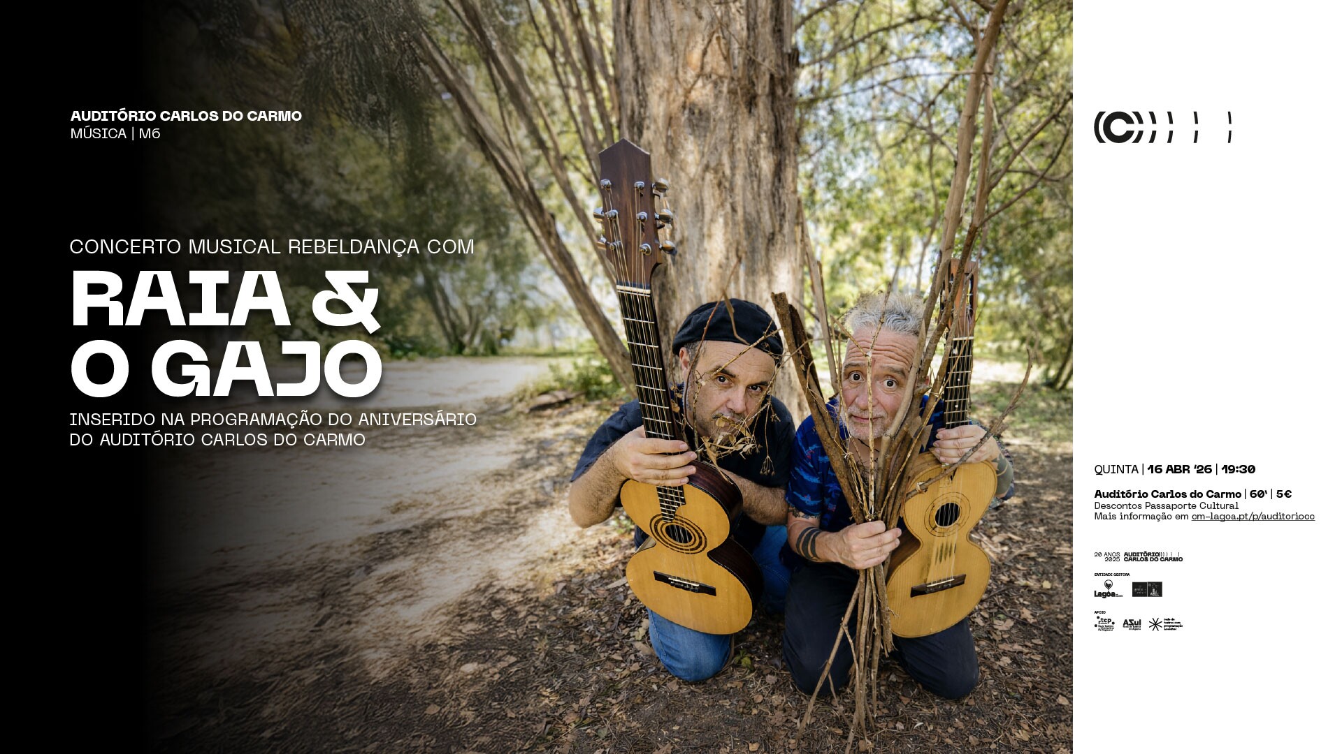O Município de Lagoa promove o Concerto Musical Rebeldança, com RAIA & O GAJO, inserido nas comemorações do aniversário do Auditório Carlos do Carmo.