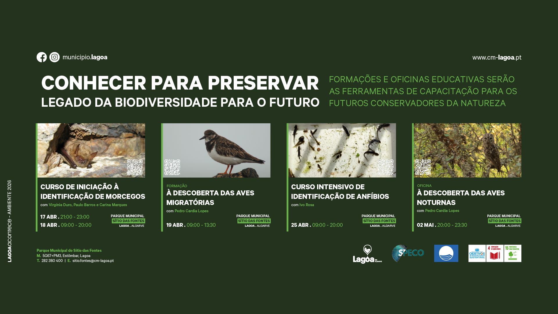 Ao longo de várias datas, o Município de Lagoa convida-te a mergulhar no fascinante mundo da fauna e dos ecossistemas locais, através de formações e oficinas práticas que vão despertar o teu olhar para a natureza como nunca antes.