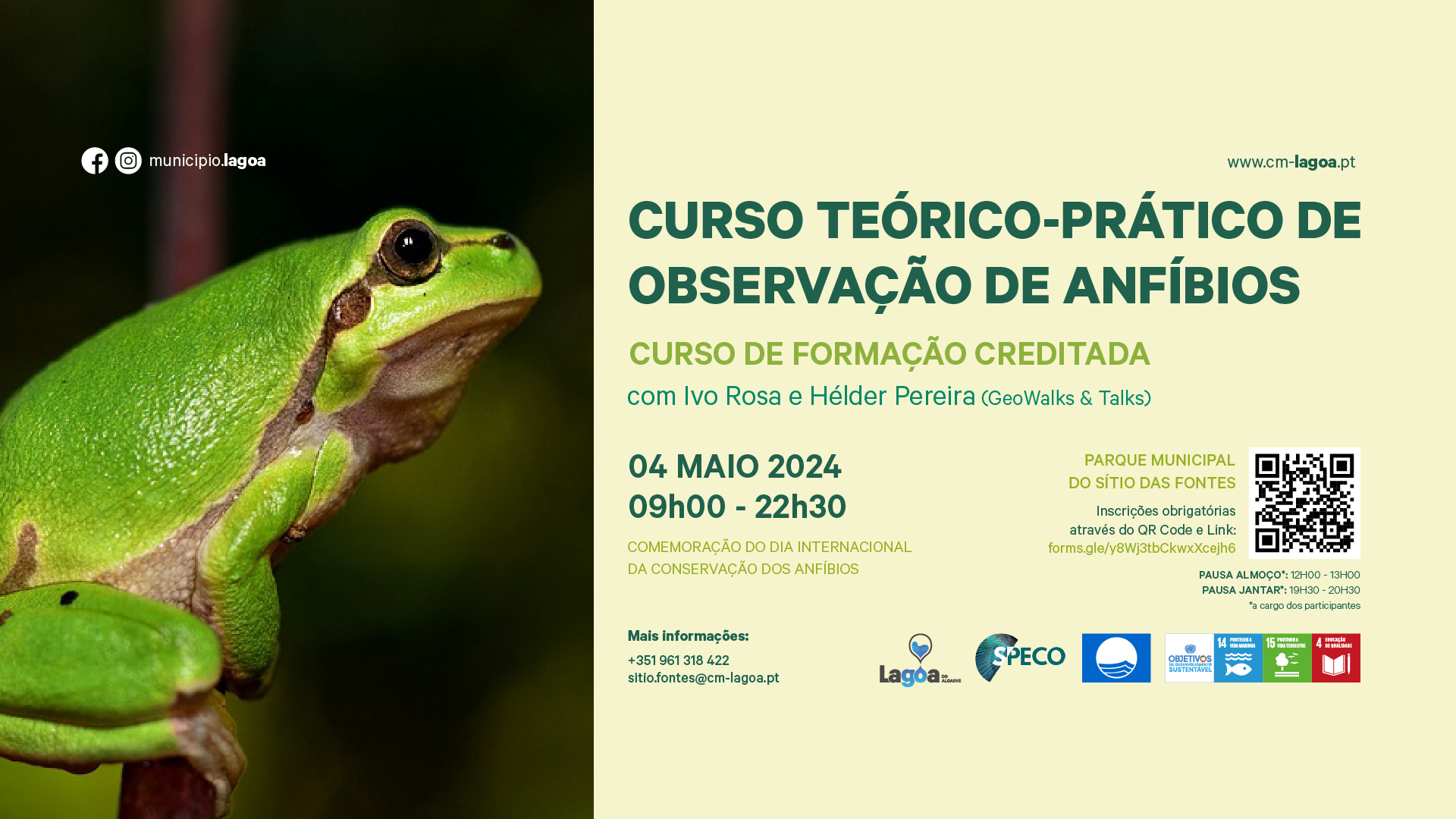Sinopse: De modo a assinalar o Dia Internacional da Conservação dos Anfíbios, o Município de Lagoa irá promover no dia 04 de Maio (Sábado), o Curso teórico-prático de Observação de Anfíbios – Uma ferramenta de Educação Ambiental. O presente Curso, de Formação Creditada pela Sociedade Portuguesa de Ecologia, pretende dar a conhecer os mais ameaçados e mal-amados vertebrados aquáticos de Portugal.