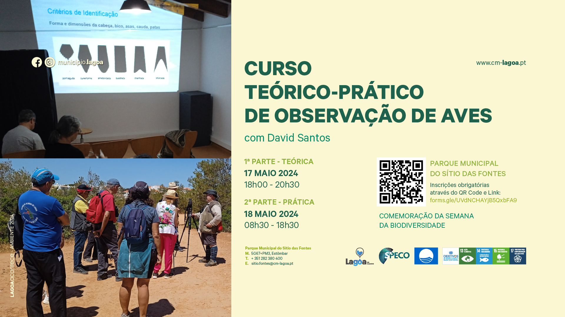 - 17 de Maio (6ª-feira), das 18h00 às 20h30 & 18 de Maio (Sábado), das 08h30 às 18h30 - Curso teórico-prático de Observação de Aves – 1ª & 2ª parte, com David Santos, no âmbito da comemoração da Semana da Biodiversidade. Inscrições gratuitas mas obrigatórias através deste LINK;