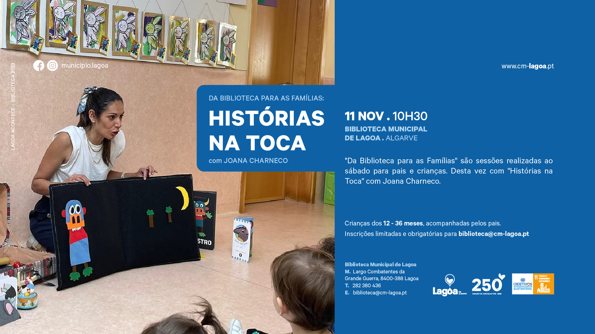 Sinopse: "Da Biblioteca para as Famílias" são sessões realizadas ao sábado na Biblioteca Municipal de Lagoa para pais e crianças, desta vez com "Histórias na Toca" com Joana Charneco: