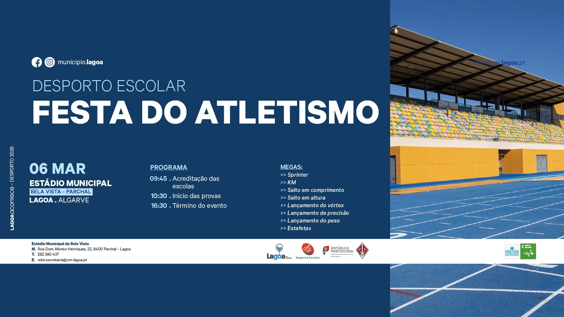 A competição é organizada pela Coordenação Regional do Desporto Escolar, com o apoio do Município de Lagoa, e tem como principal objetivo apurar os alunos/atletas que irão representar o Algarve na fase nacional do XX Mega Sprinter 2025-2026.