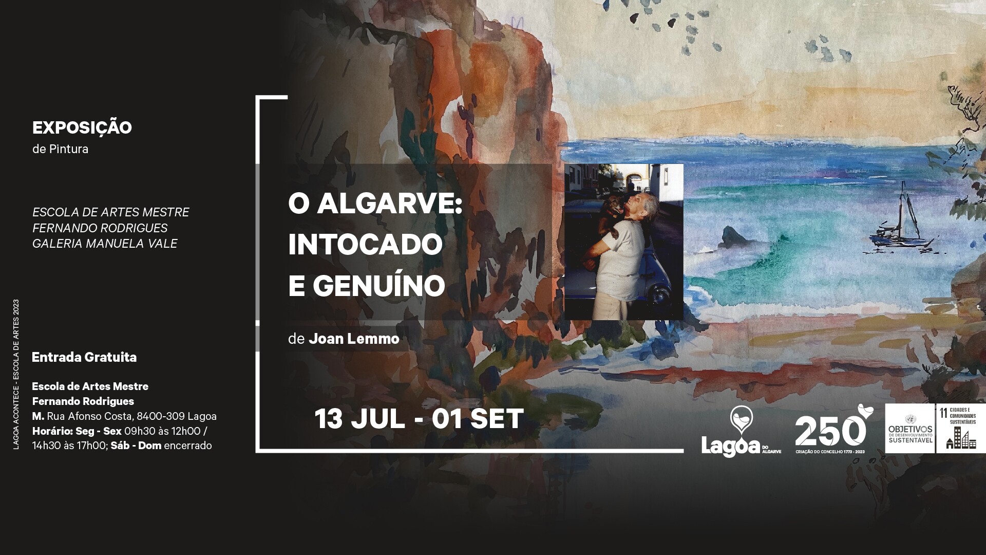 A Escola de Artes Mestre Fernando Rodrigues, em Lagoa, recebe a Exposição de Pintura “O Algarve: Intocado e Genuíno”, de Joan Lemmo, que estará em exibição na Galeria Manuela Vale no período de 13 de julho a 01 de setembro.