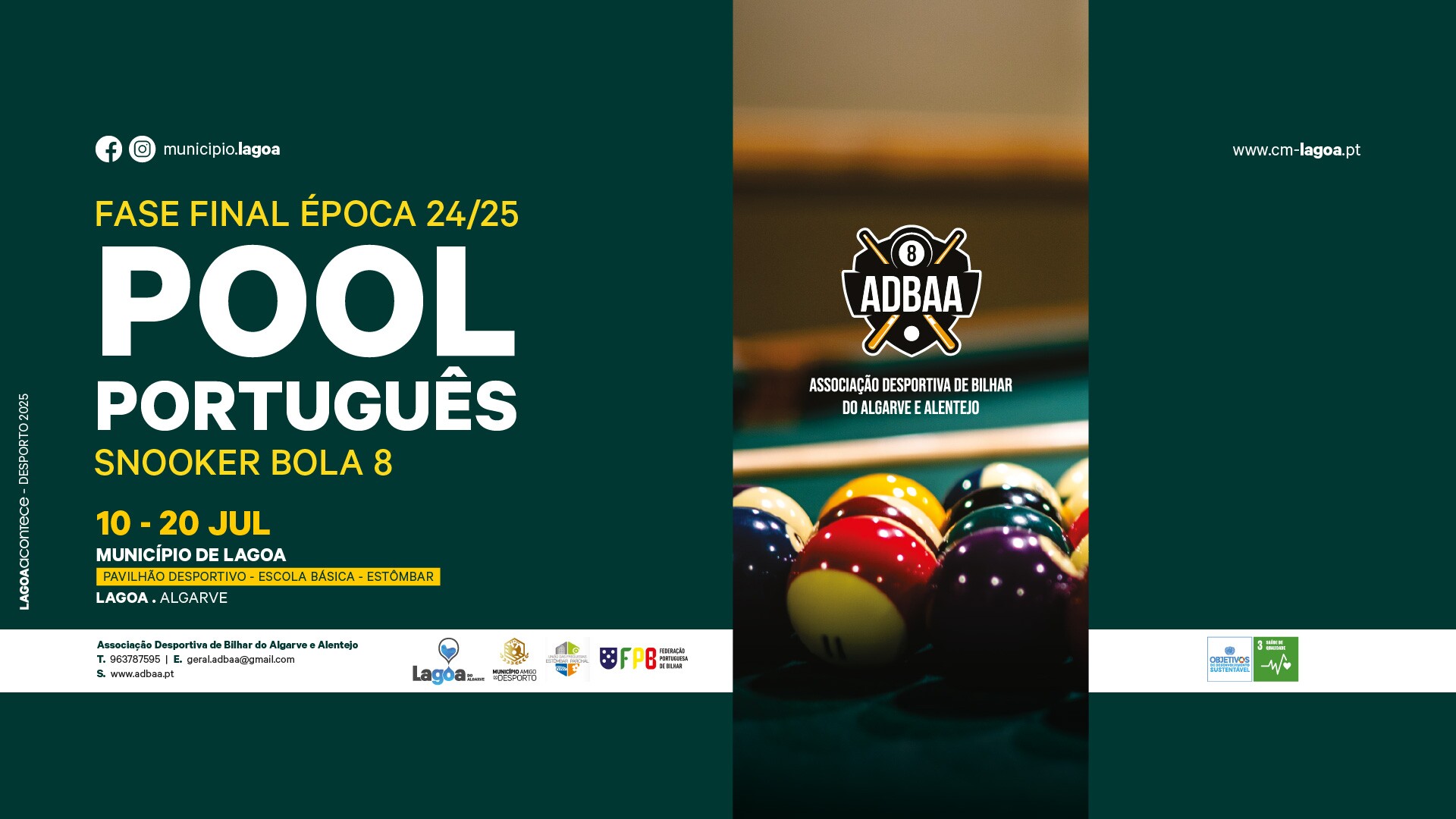 ⚡ De 10 a 20 de julho, Lagoa recebe a fase final do Pool Português (Bola 8) no Pavilhão da EB 2,3 João Conin, em Estômbar.