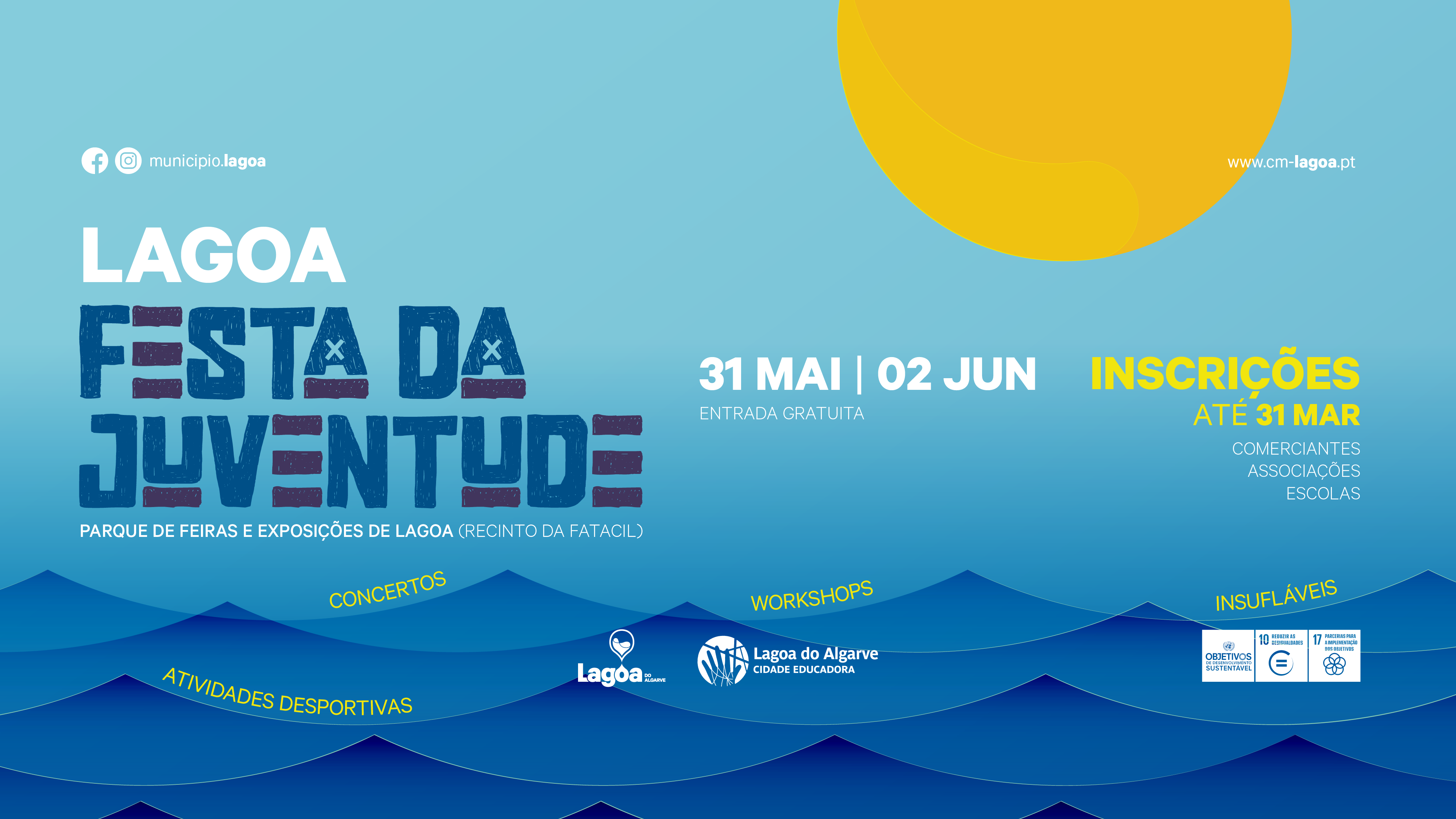 Depois do sucesso das anteriores edições, o Município de Lagoa irá dar continuidade à 🥳🌟Festa da Juventude🎉🎶 que, em 2024, terá lugar nos dias 31 de maio, 1 e 2 de junho, com uma forte aposta num cartaz diversificado e numa programação intensa, demonstrando o que melhor se faz em Lagoa, nas diversas áreas de ação comunitária.