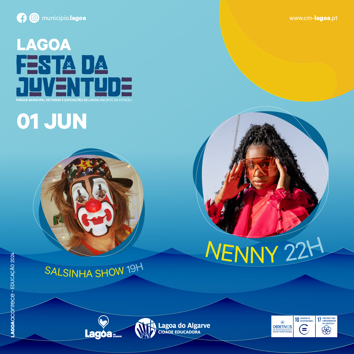 🥳🌟 Vem aí a Festa da Juventude! De 31 de maio a 02 de junho, o Parque Municipal de Feiras e Exposições de Lagoa vai ser o ponto de encontro da juventude, com música ao vivo, atividades desportivas, workshops e muito mais, esta é uma festa que não podes perder! A entrada é gratuita🤩, mas contamos com a tua generosidade na doação de bens alimentares para quem mais precisa. Não percas esta oportunidade de te divertires e fazer o bem!🎉🎶