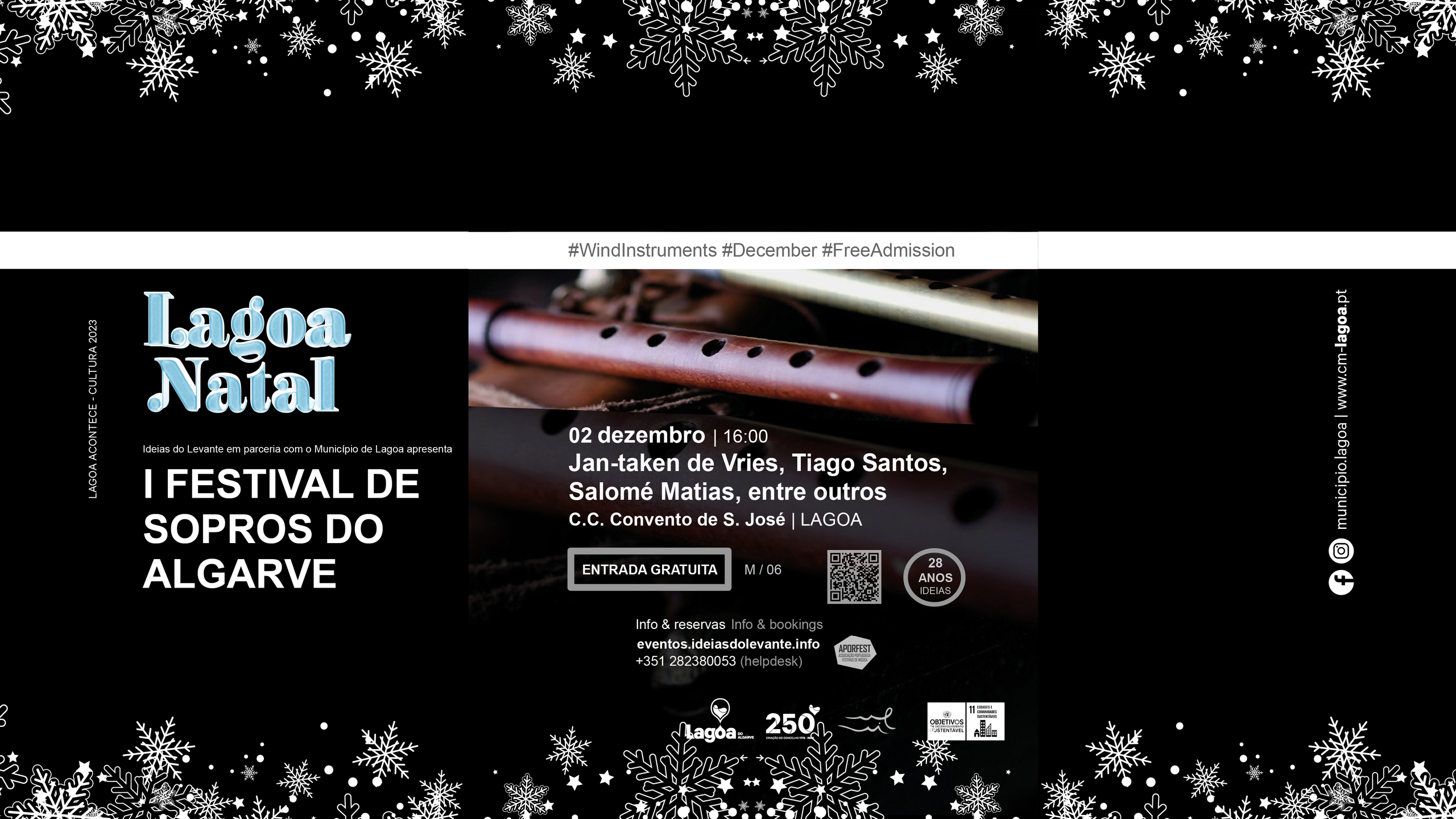 Sinopse: No âmbito do seu plano de produções musicais para 2023, a Ideias do Levante – Associação Cultural de Lagoa (Algarve), em parceria com o Município de Lagoa, organiza nos dias 02 e 03 de dezembro de 2023, a primeira edição do Festival de Sopros do Algarve.
