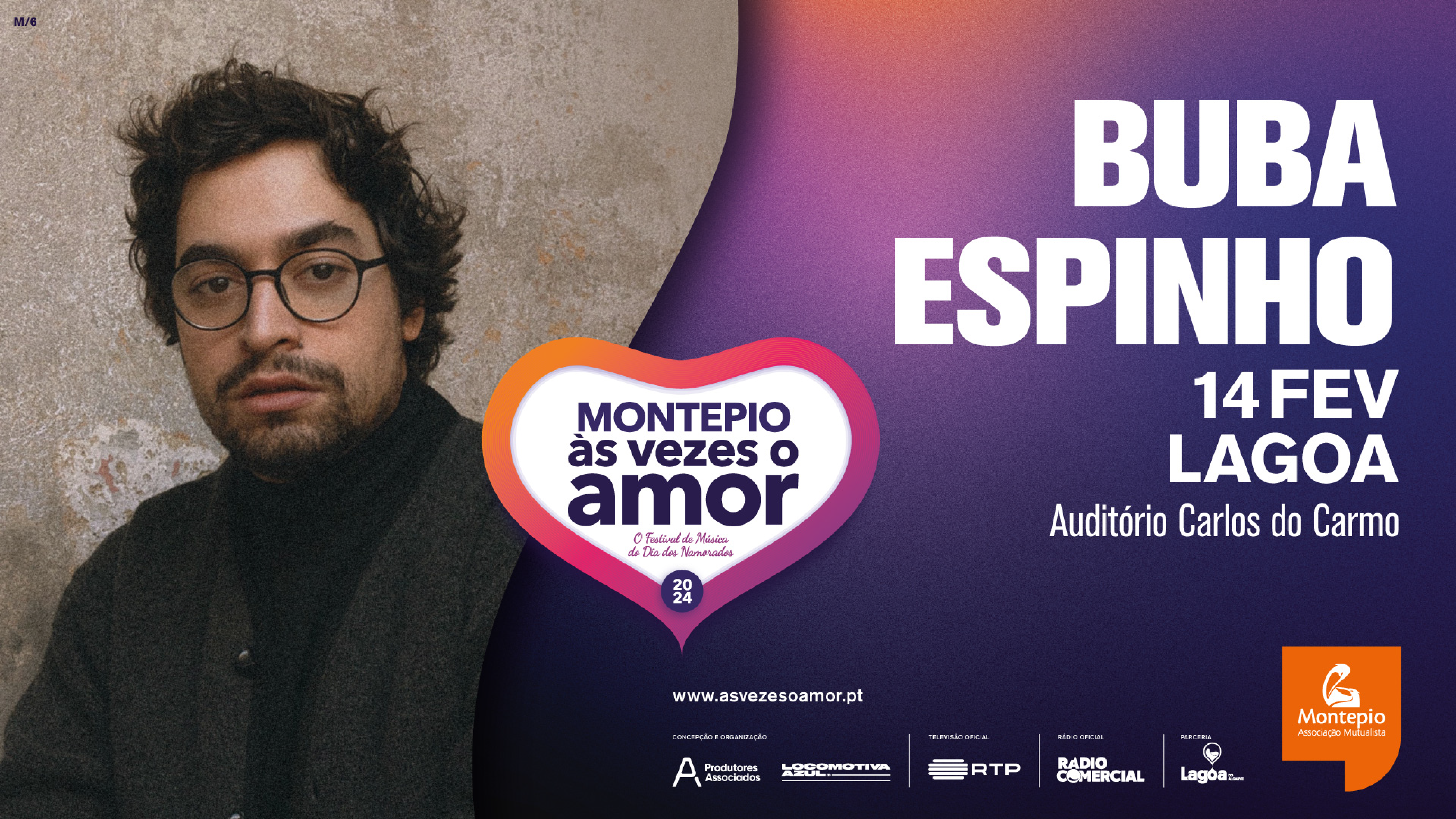 O Dia dos Namorados celebra-se em Lagoa, no Auditório Carlos do Carmo, com a 10ª edição do “Festival Montepio Às Vezes o Amor” e ao som de Buba Espinho, em estreia no Festival. O concerto realiza-se no dia 14 de fevereiro, pelas 21h30 e os bilhetes já se encontram à venda