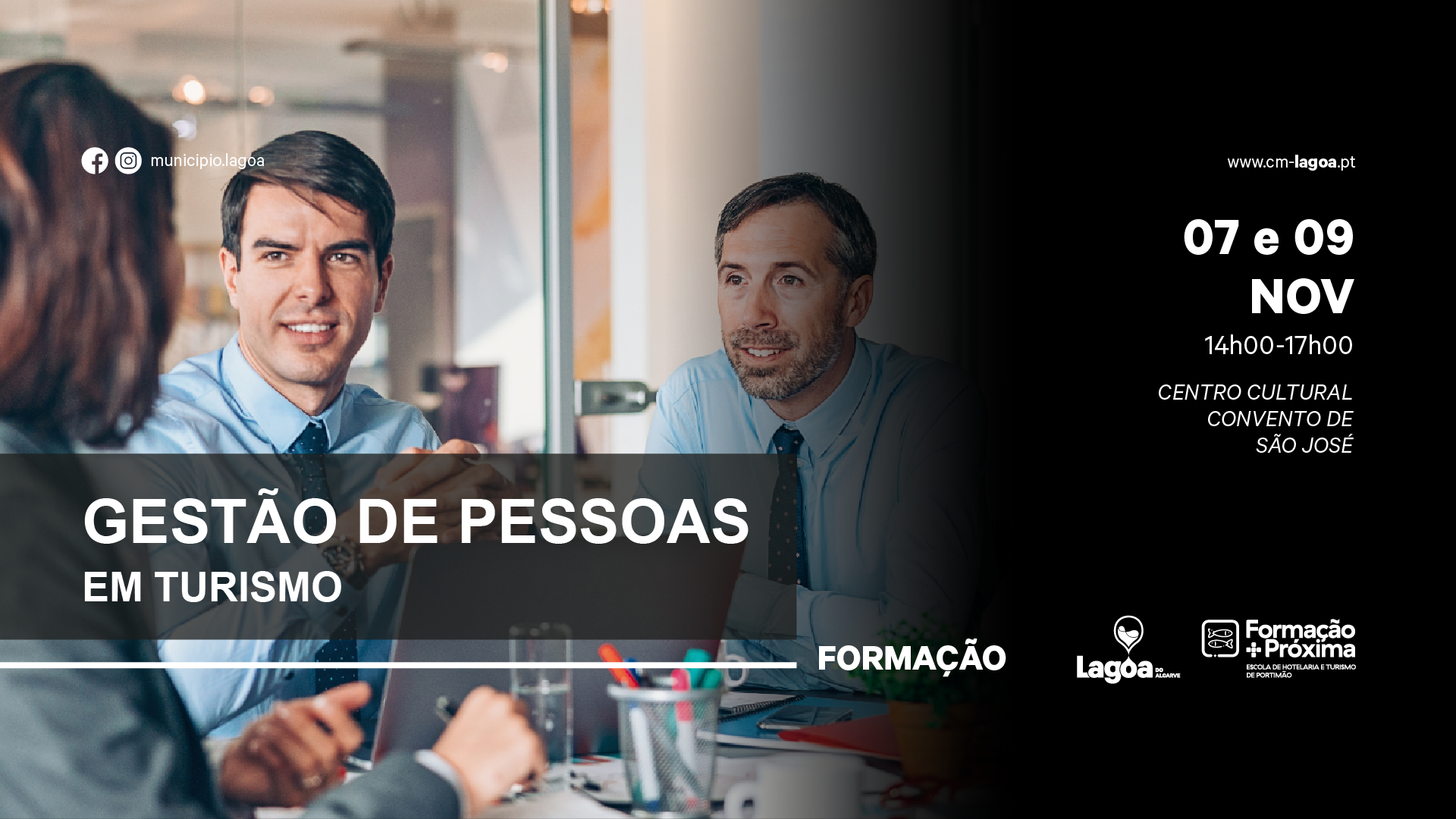 Nos dias 07 e 09 de novembro, realiza-se a formação em “Gestão de Pessoas", com as sessões a terem lugar no Centro Cultural Convento de S. José, em Lagoa, das 14h00 às 17h00, num total de 2 sessões.