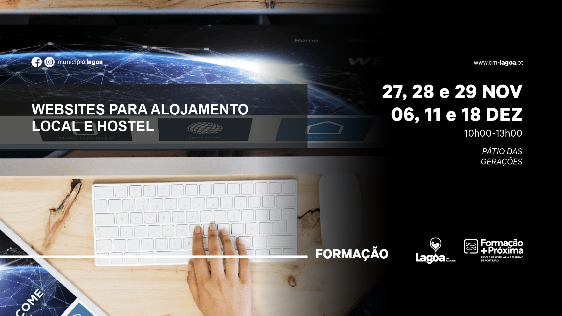 O Plano de Formação do último trimestre de 2024 da Formação +Próxima, uma parceria entre o Município de Lagoa e a Escola de Hotelaria e Turismo de Portimão – EHTPtm, preparou mais uma formação para realizar no final de novembro e início de dezembro com o tema 🌐Websites para Alojamento Local e Hostel👩💻, que decorre nos dias 27, 28 e 29 de novembro e nos dias 06, 11 e 18 de dezembro, das 10h00 às 13h00, num total de 16 horas, no Pátio das Gerações, em Lagoa.