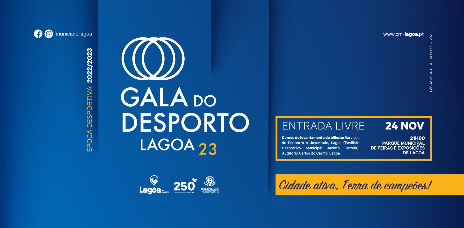 O Parque Municipal de Feiras e Exposições de Lagoa recebe, amanhã, dia 24 de novembro, pelas 21h00, a “Gala do Desporto 2023”, referente à época desportiva 2022/2023 e a entrada é livre, apenas limitada aos lugares existentes.