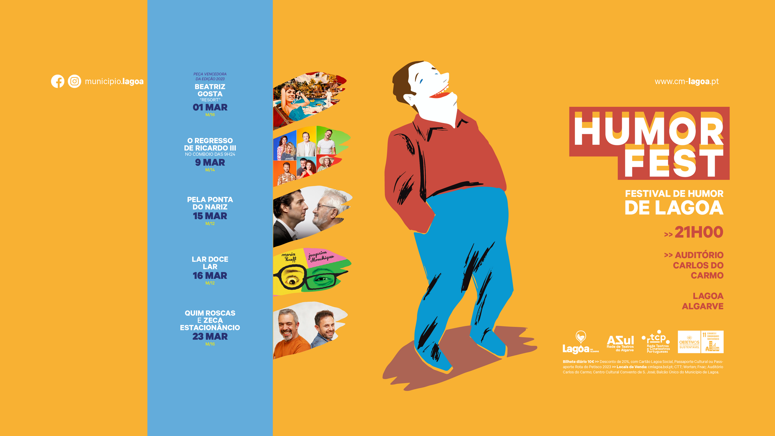 São vários os géneros, os artistas e as artistas, bem como, os motivos para que venha descontrair e passar bons momentos em Lagoa e no Auditório Carlos do Carmo com o HUMORFEST😃
