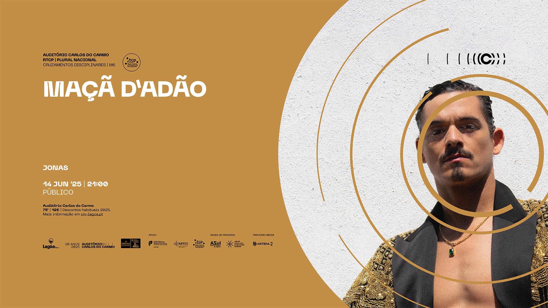 O Auditório Carlos do Carmo, em Lagoa, apresenta mais um grande espetáculo no próximo dia 14 de junho, pelas 21h00 ao receber em palco o concerto 🎶Jonas - Maçã D'Adão🎤, celebrando toda a riqueza cultural presente nas sonoridades do Fado! Os bilhetes já se encontram à venda.