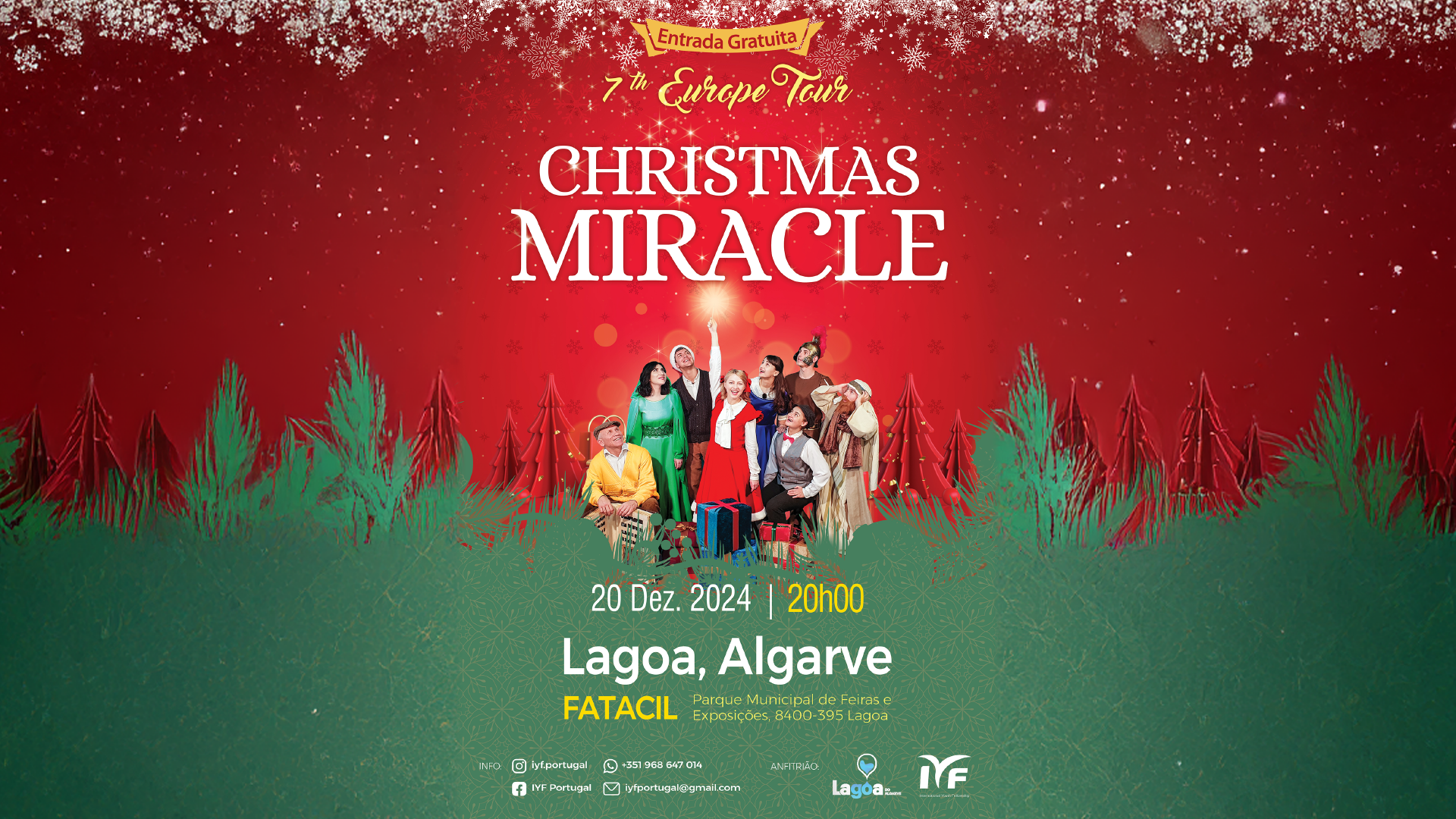 O Parque Municipal de Feiras e Exposições, em Lagoa, recebe no dia 20 de dezembro, pelas 20h00, o espetáculo de Natal 🌠Milagre de Natal - Christmas Miracle🎄 e a entrada é gratuita!