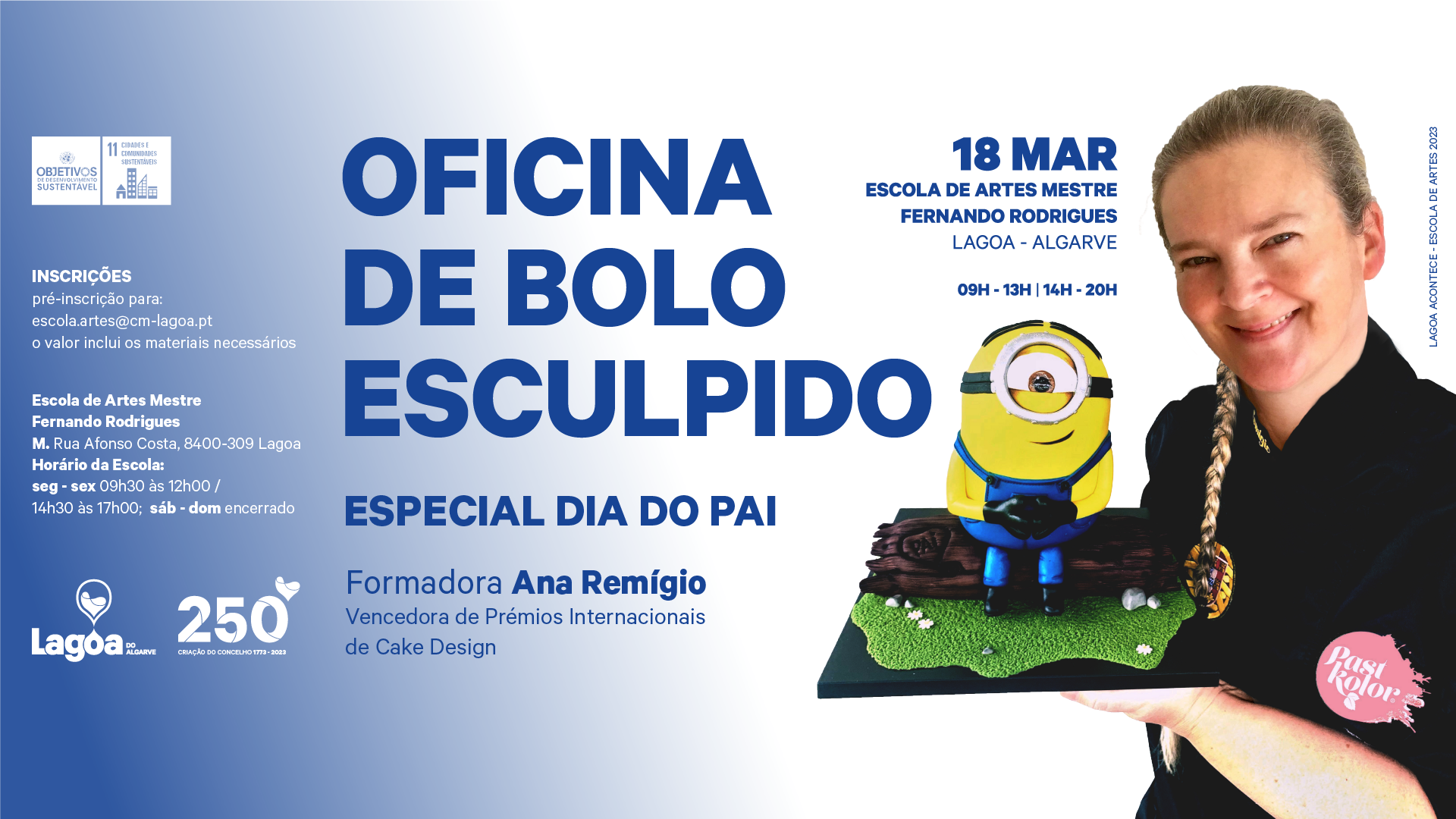 No próximo dia 18 de março irá realizar-se uma Oficina de Bolo Esculpido, “Especial Dia do Pai”, orientada por Ana Remígio - International Award Winner Cake Designer.