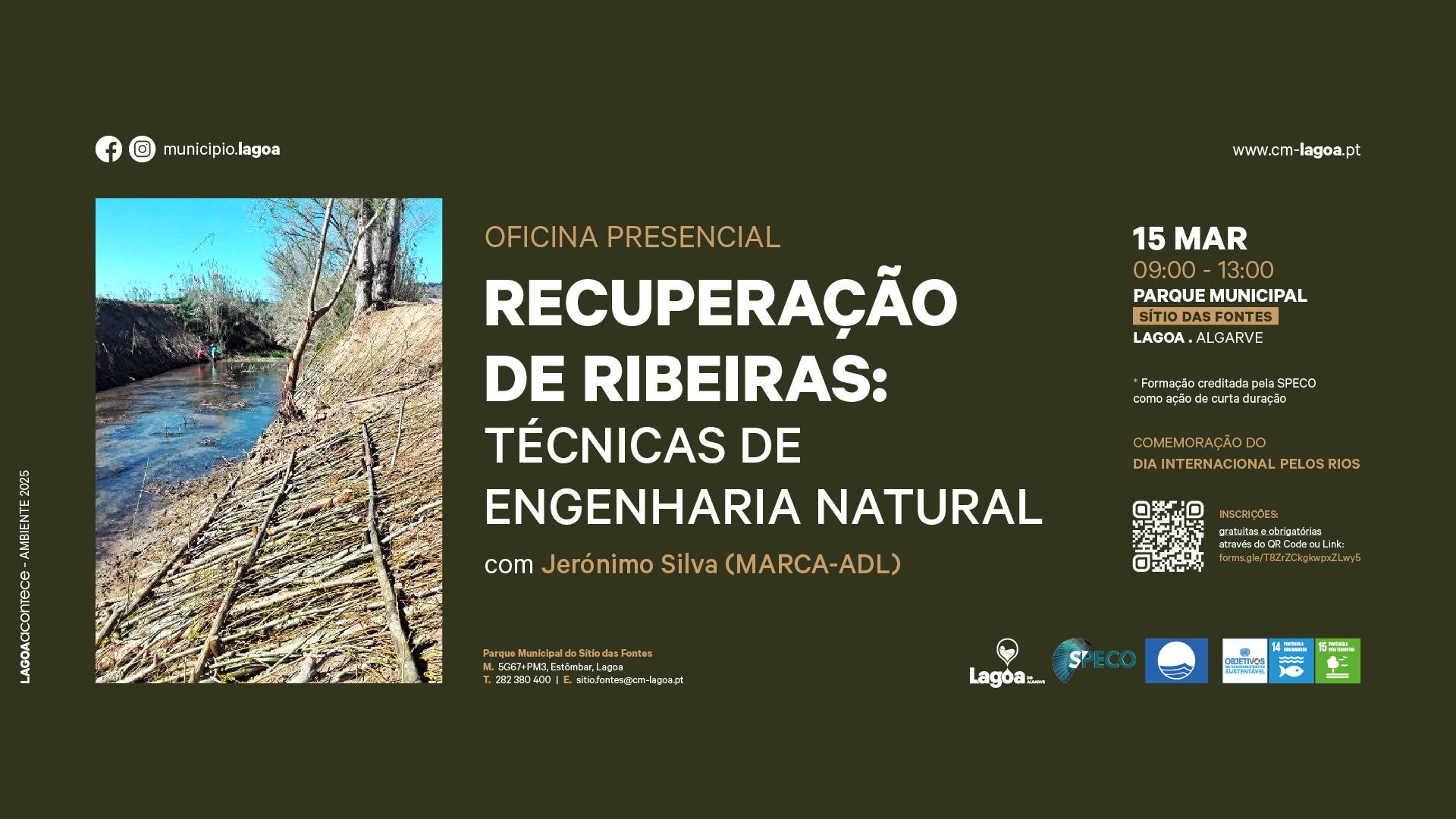 O Município de Lagoa em parceira com a Marca-ADL Associação de Desenvolvimento Local, vai promover no próximo dia 15 de março, sábado, entre as 09h00 e as 13h00, no Parque Municipal do Sítio das Fontes, em Estômbar, a Oficina Presencial ⚒️Recuperação de Ribeiras: Técnicas de Engenharia Natural🏞️, com Jerónimo Silva (Marca-ADL). Esta atividade realiza-se no âmbito da Comemoração do Dia Internacional pelos Rios.