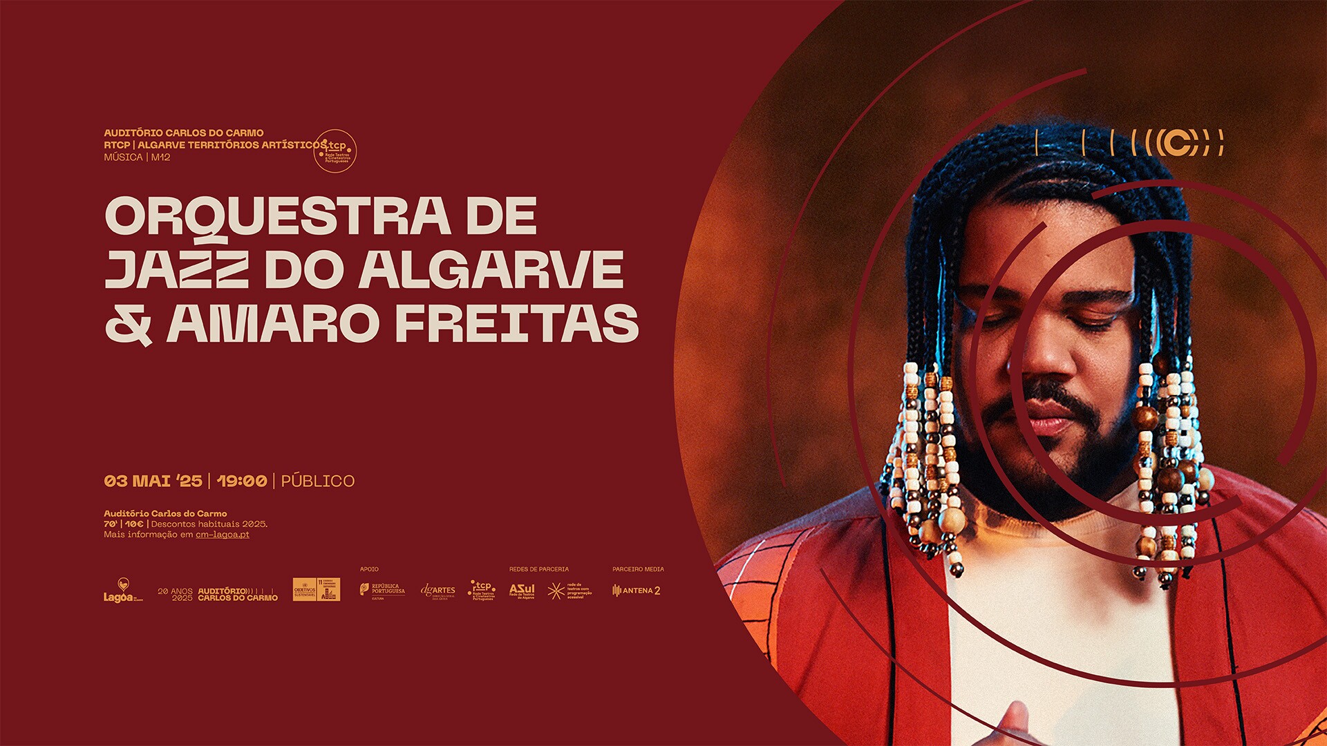 No dia 03 de maio, o Auditório Carlos do Carmo, em Lagoa, recebe o espetáculo musical 🎼Orquestra de Jazz do Algarve & Amaro Freitas🎹, nesta incrível colaboração que junta em palco o brilhantismo da Orquestra de Jazz do Algarve ao inigualável pianista e compositor de jazz brasileiro Amaro Freitas.