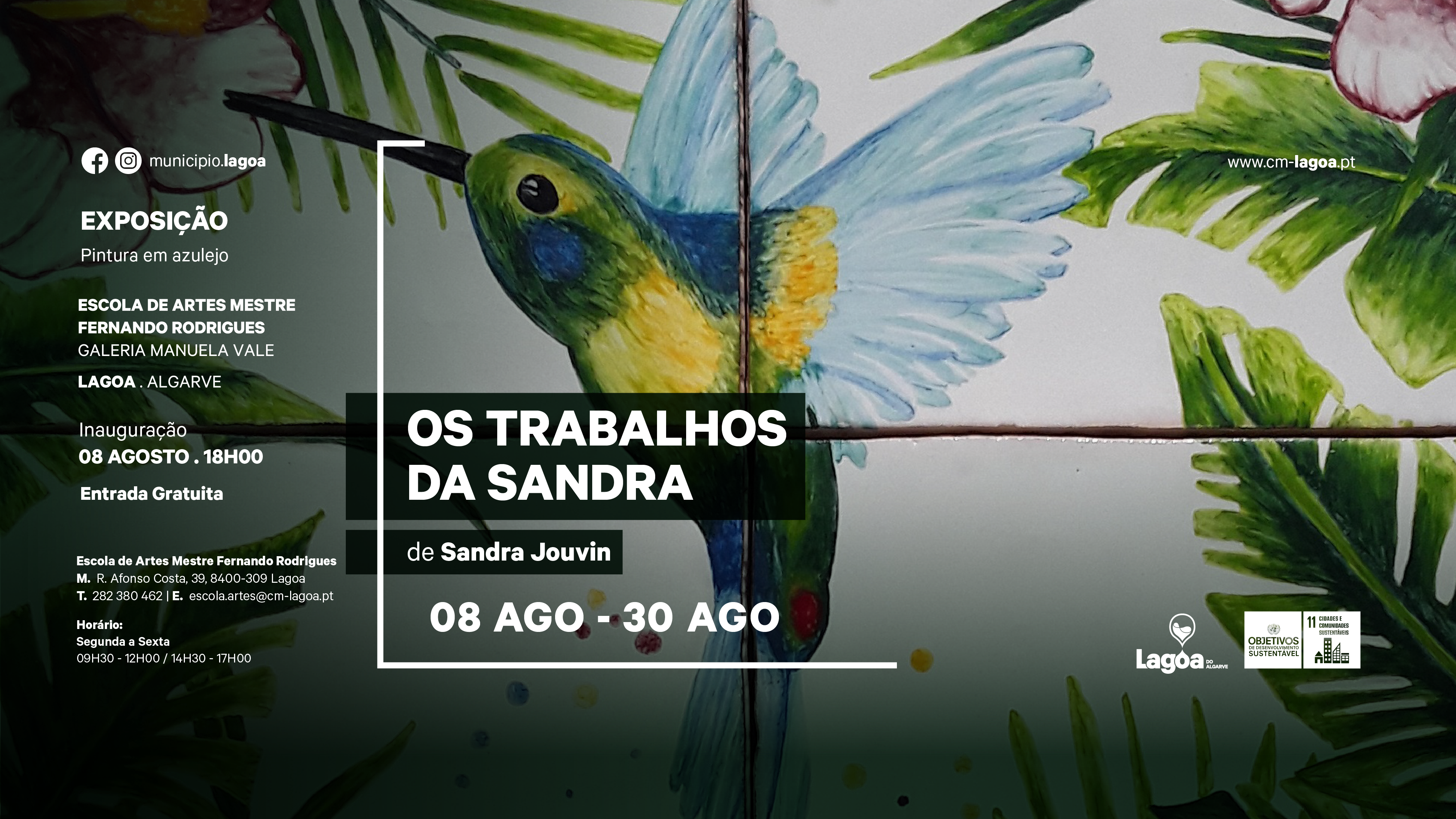 A Escola de Artes Mestre Fernando Rodrigues, em Lagoa, recebe a Exposição de Pintura em Azulejo 🎨Os Trabalhos da Sandra🖌️ que ficará patente na Galeria Manuela Vale de 08 a 30 de agosto e a entrada é gratuita.