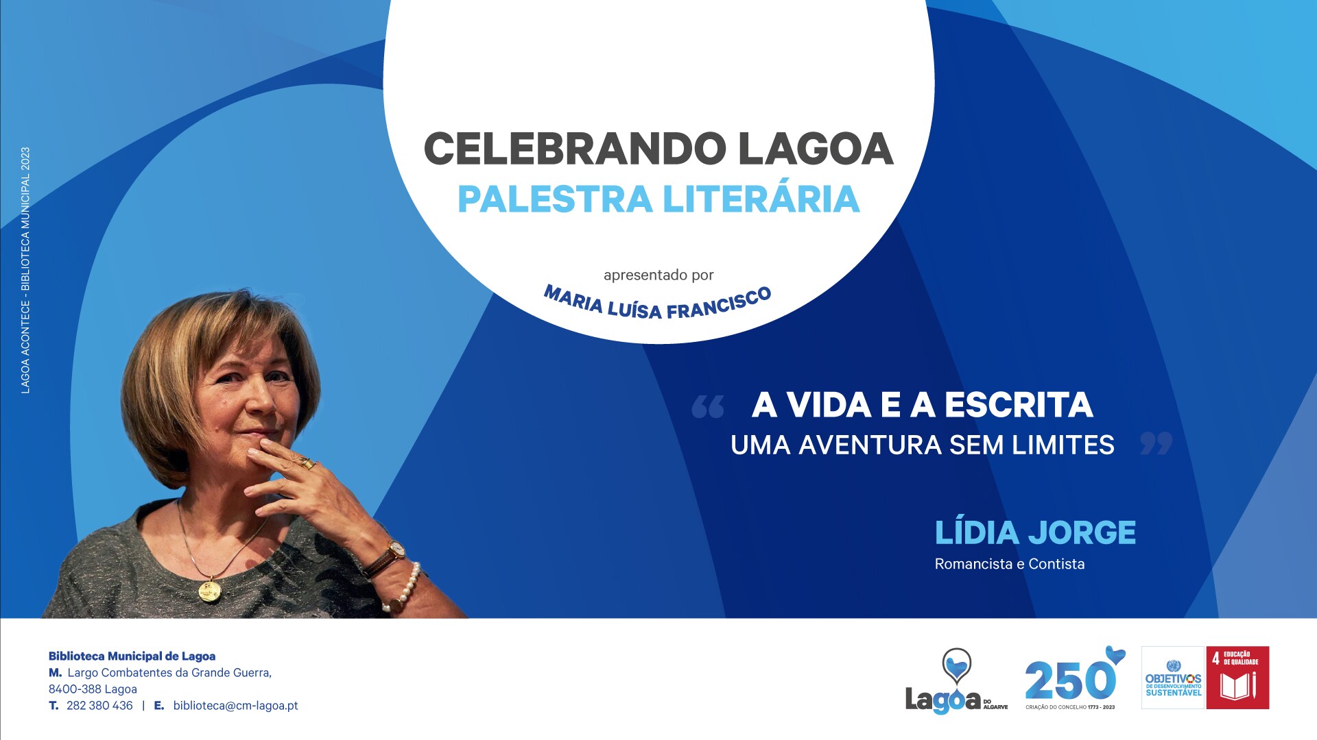 No dia 28 de junho, pelas 18h00, a Biblioteca Municipal de Lagoa recebe, na Sala Polivalente da Biblioteca, a Palestra Literária “A Vida e a Escrita, Uma Aventura Sem Limites”, com Lídia Jorge e apresentado por Maria Luísa Francisco.