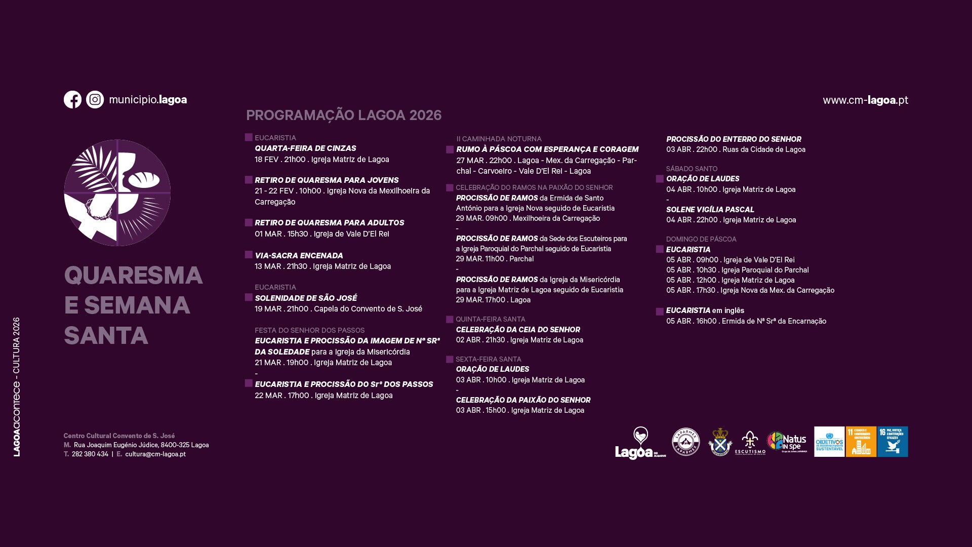 Tem início a 18 de fevereiro as atividades da 🕯️Quaresma e Semana Santa 2026⛪, em Lagoa, e que irão percorrer esta época do ano com um vasto programa até ao domingo de Páscoa.