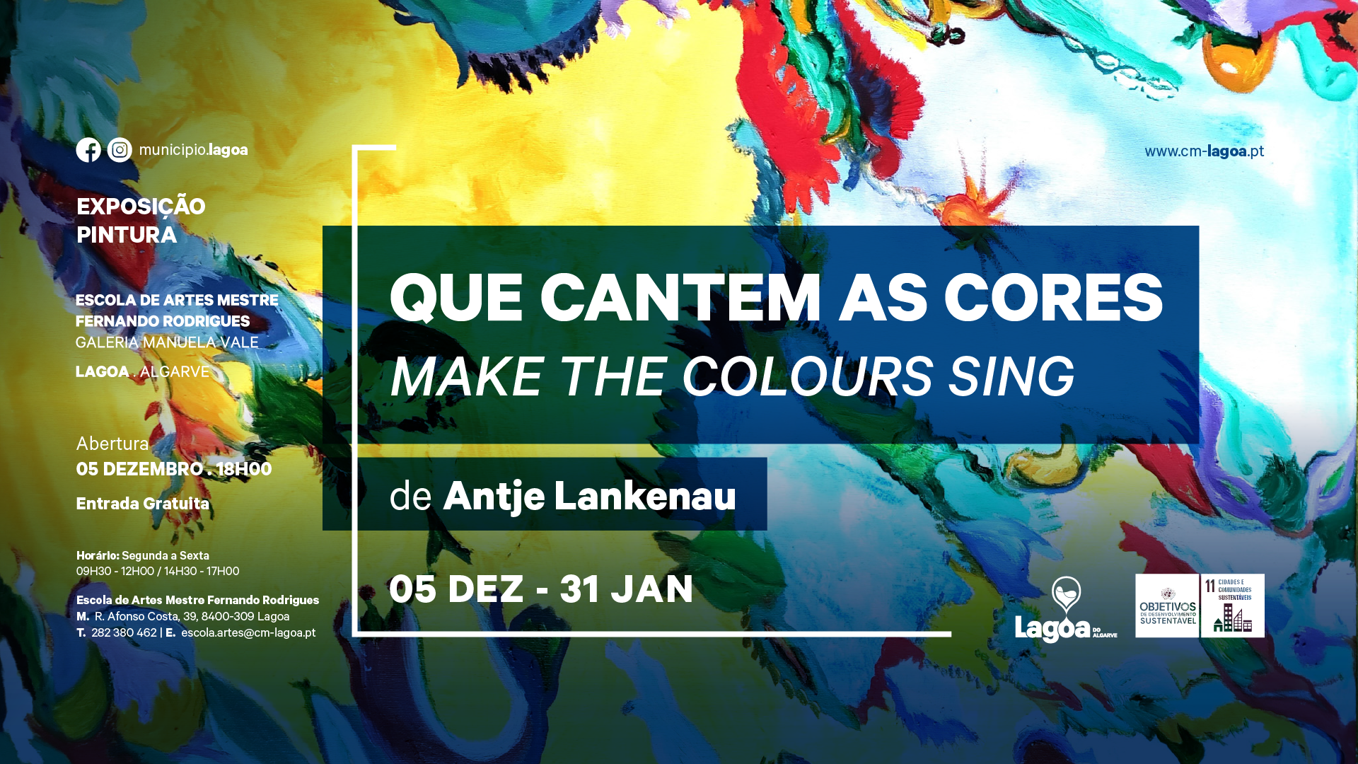 A Escola de Artes Mestre Fernando Rodrigues, em Lagoa, recebe a Exposição de Pintura 🎨Que Cantem as Cores - Make the Colours Sing🖼️, de Antje Lankenau, que ficará patente na Galeria Manuela Vale de 05 de dezembro a 31 de janeiro e a entrada é gratuita.