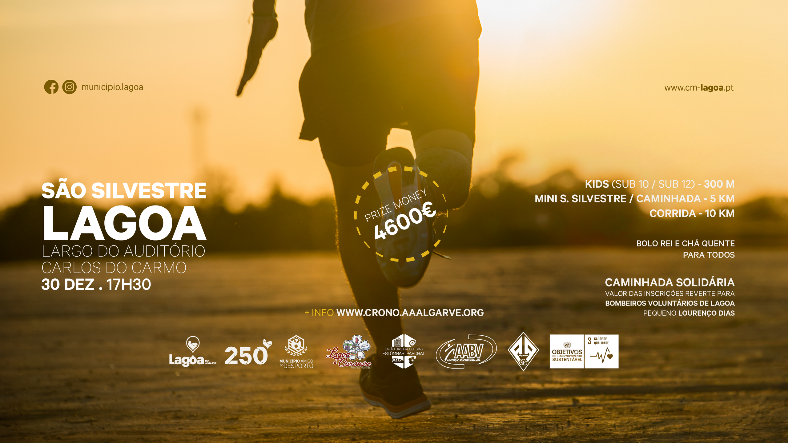 Nota 5: Inscrições limitadas a 1.000 participantes na Corrida São Silvestre de Lagoa e 1.000 participantes na Mini/ Caminhada São Silvestre de Lagoa.
