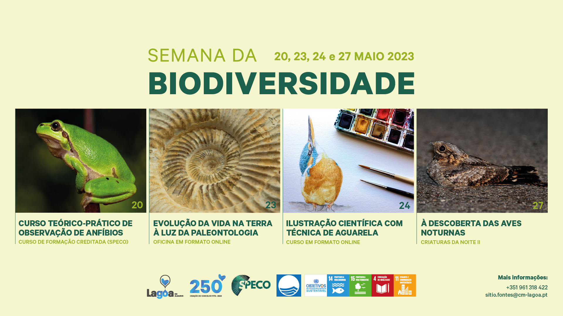 - 20 de maio (sábado), das 09h00 às 22h30 - Curso teórico-prático de Observação de Anfíbios – Uma Ferramenta de Educação Ambiental, com Ivo Rosa e Hélder Pereira (GeoWalks & Talks), no âmbito da comemoração do Dia Internacional da Biodiversidade.