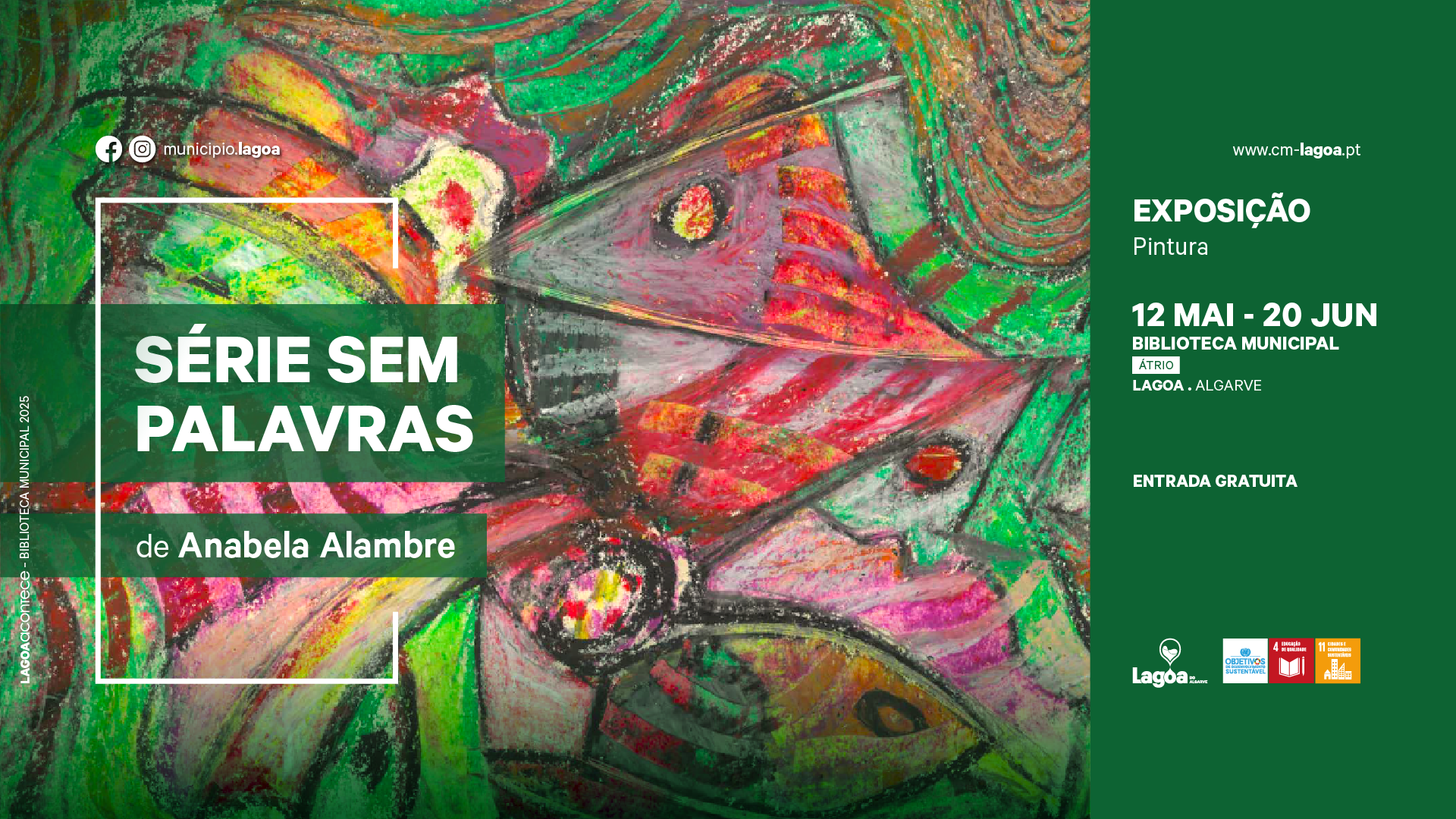 A Biblioteca Municipal de Lagoa recebe a Exposição de Pintura 🖼️Série sem Palavras🎨, de Anabela Alambre, que ficará patente no átrio de 12 de maio a 20 de junho. A entrada é gratuita!