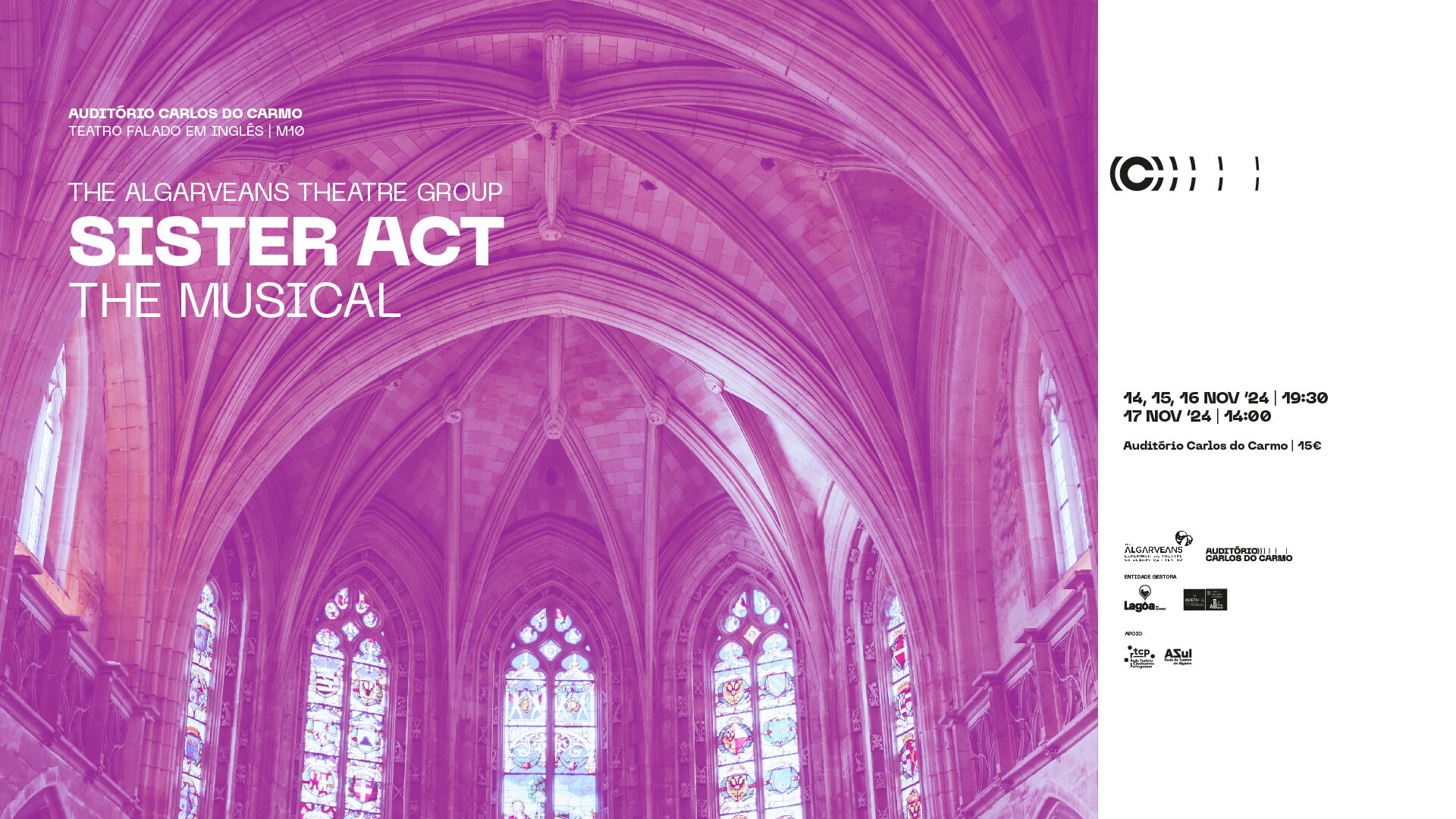 O Auditório Carlos do Carmo, em Lagoa, recebe o musical 🎭Sister Act😆, pelo The Algarveans Theatre Group, com apresentações nos dias 14, 15 e 16 de novembro, pelas 19h30 e dia 17 de novembro, pelas 14h00.